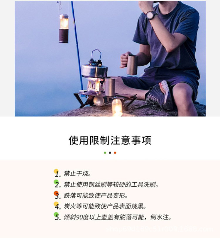 Huofeng Yuan Ye 울트라 라이트 스테인레스 스틸 주전자 야외 자율 주행 캠핑 피크닉 클래식 주전자 단일 군인 냄비 주전자스토어 가기