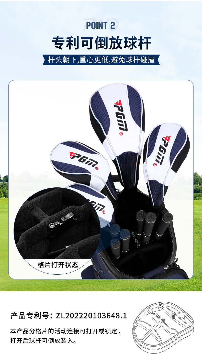 2 | 可倒放球杆,杆头朝下,重心更低,避免球杆碰撞 | |||
