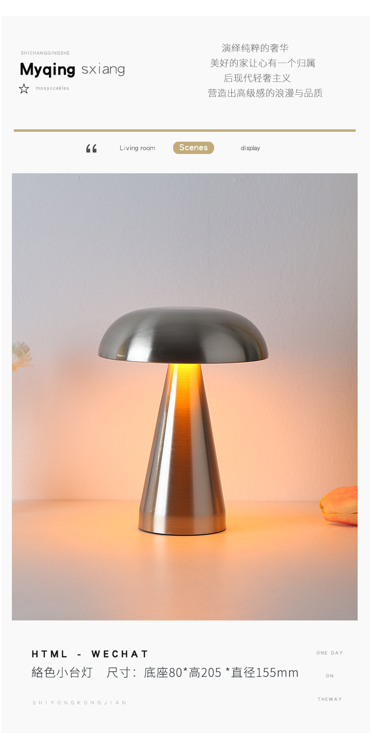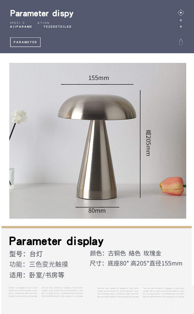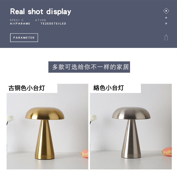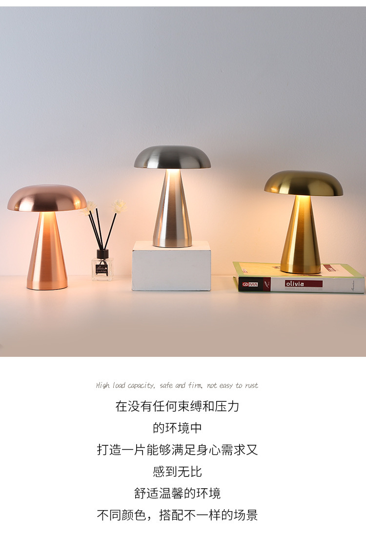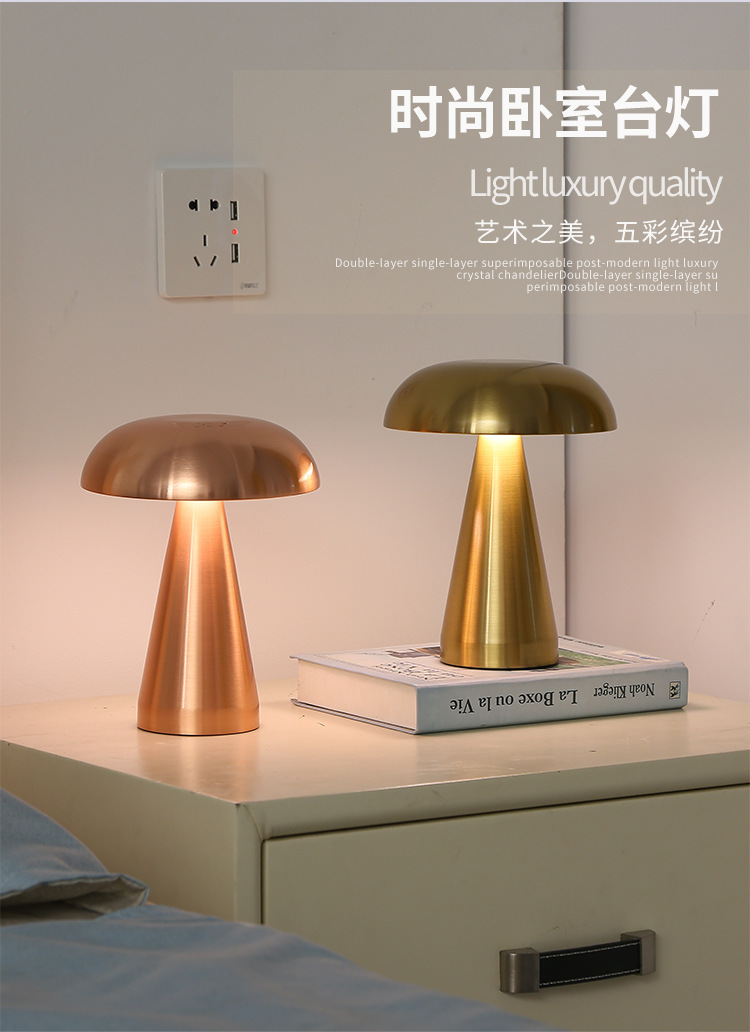 크로스보더 철제 바 테이블 램프, 식탁 램프, 침실 분위기 조명, 버섯 모양 야간 조명, LED 램프, 터치식, 충전식스토어 가기