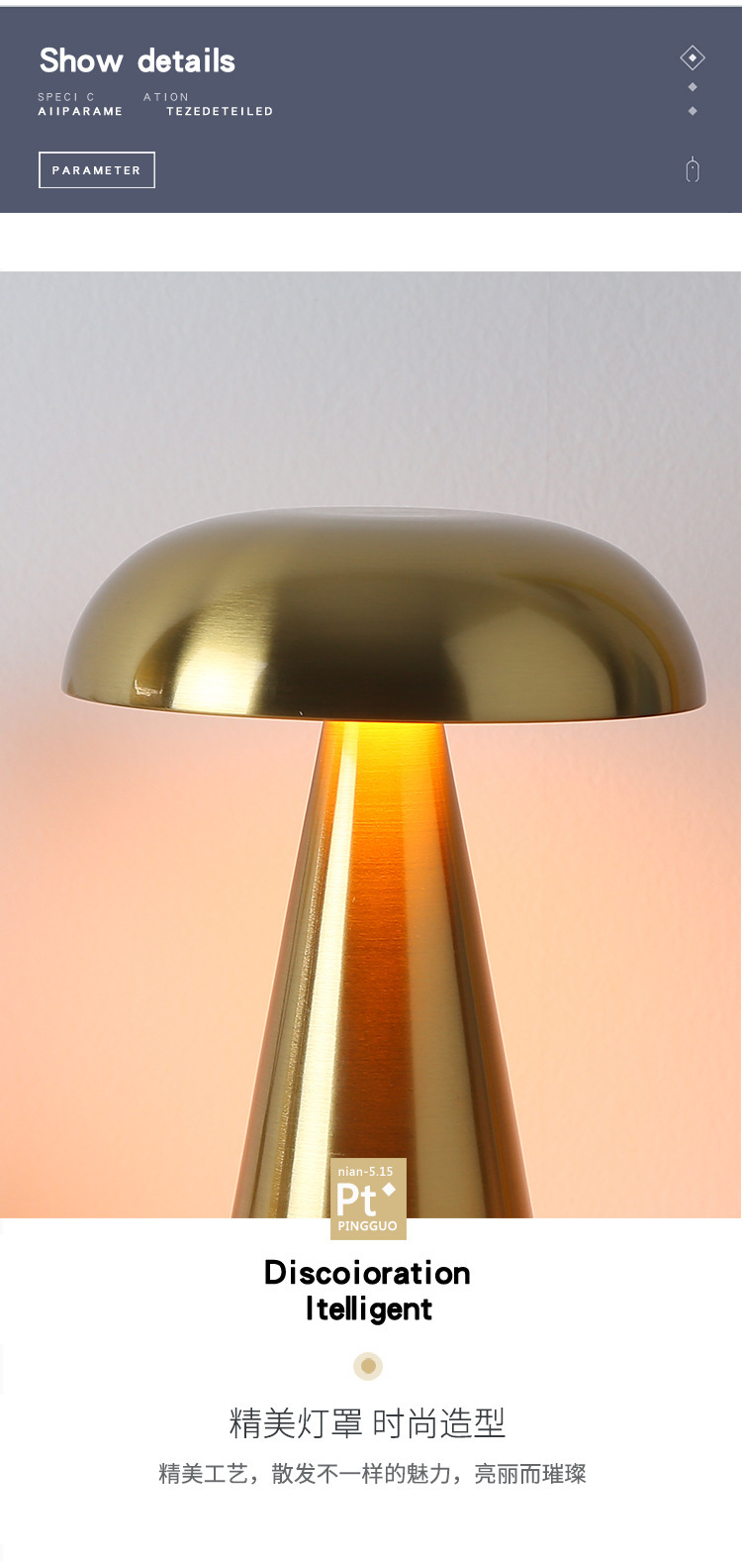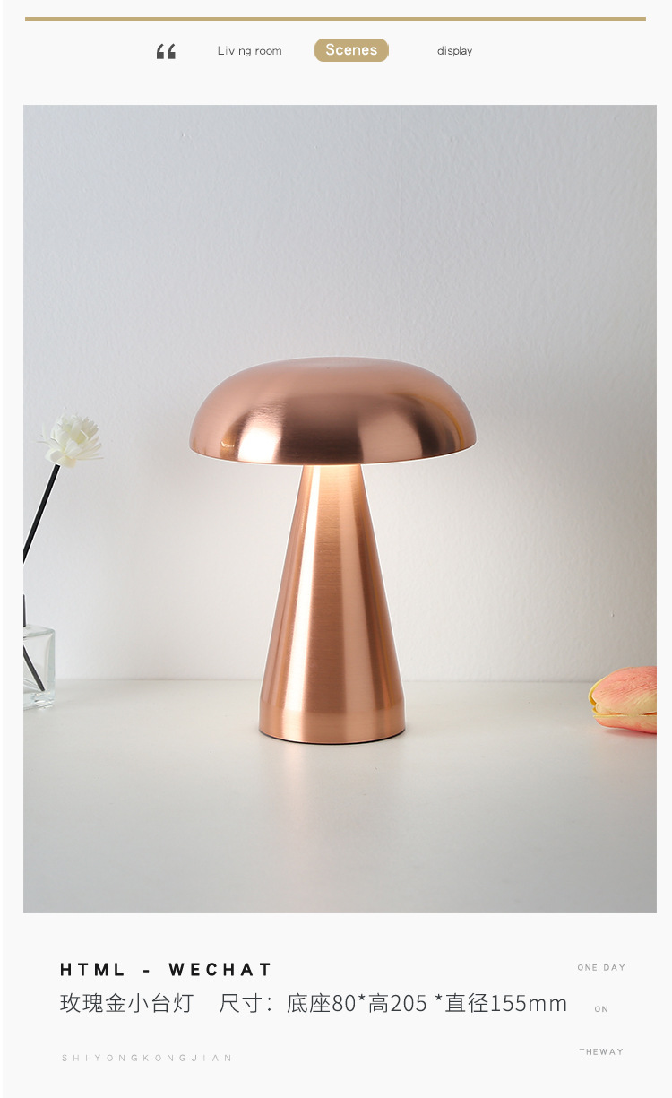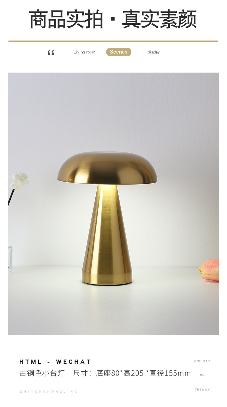 크로스보더 철제 바 테이블 램프, 식탁 램프, 침실 분위기 조명, 버섯 모양 야간 조명, LED 램프, 터치식, 충전식스토어 가기