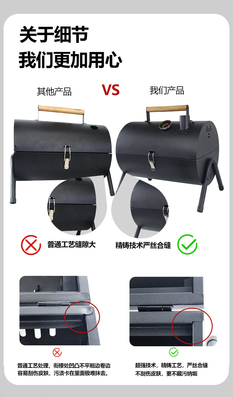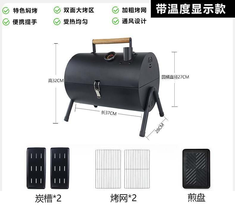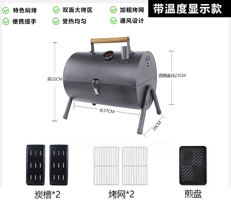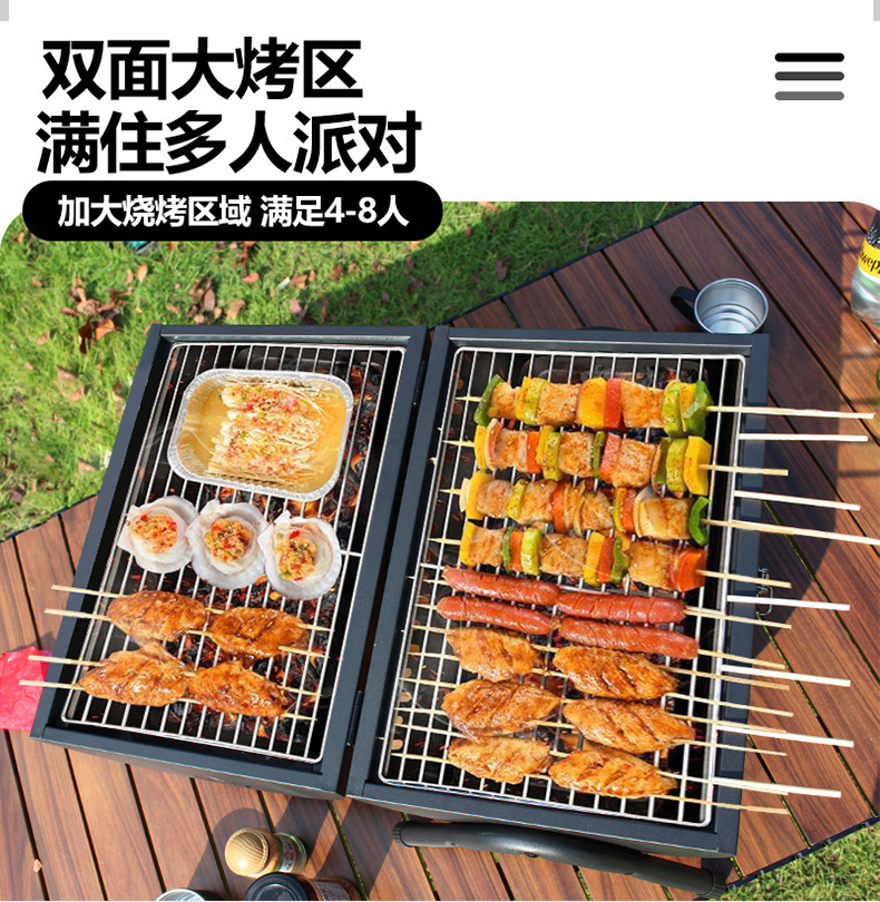 야외 휴대용 훈제 바베큐 그릴 손잡이가 있는 양면 베이킹 팬 미국 피크닉 캠핑 바베큐 그릴스토어 가기