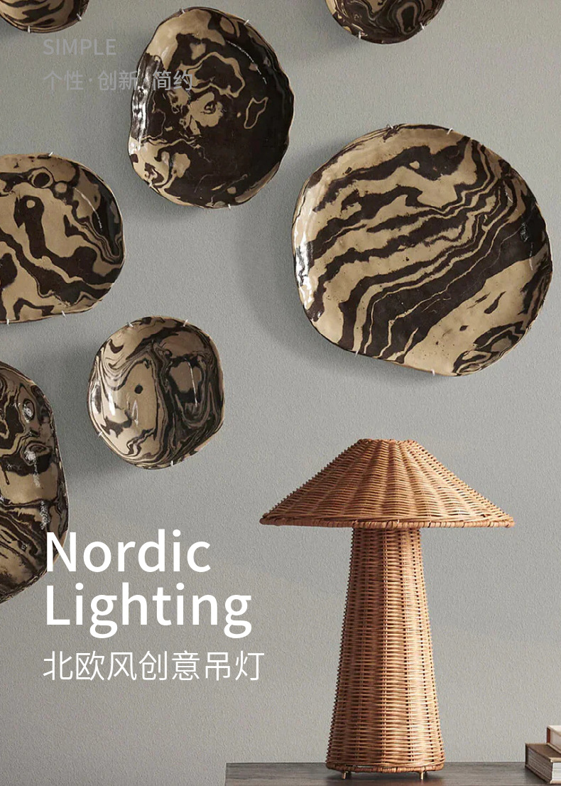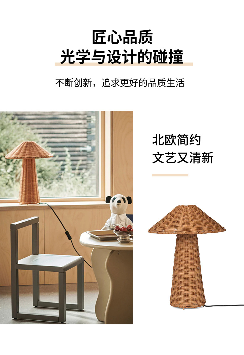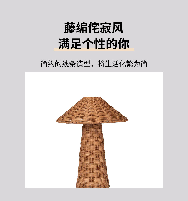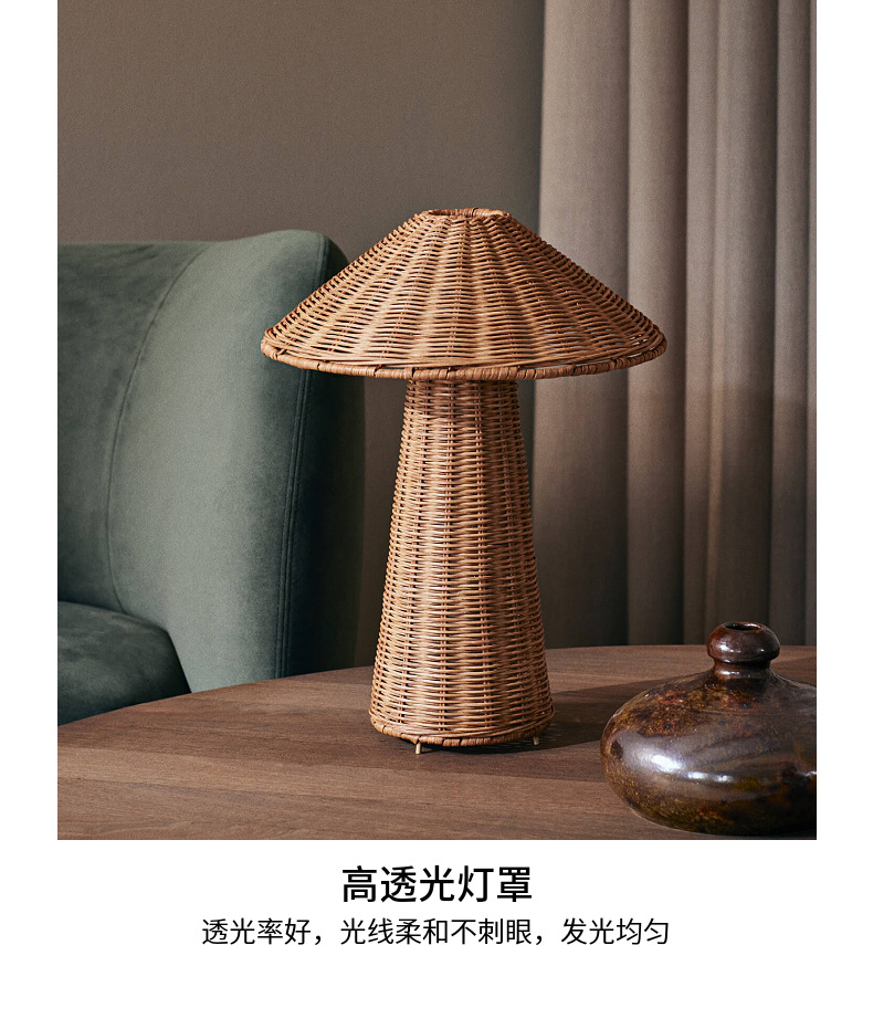 북유럽 복고풍 등나무 수제 버섯 테이블 램프 B & B 다실 연구 침실 창조적 인 램프