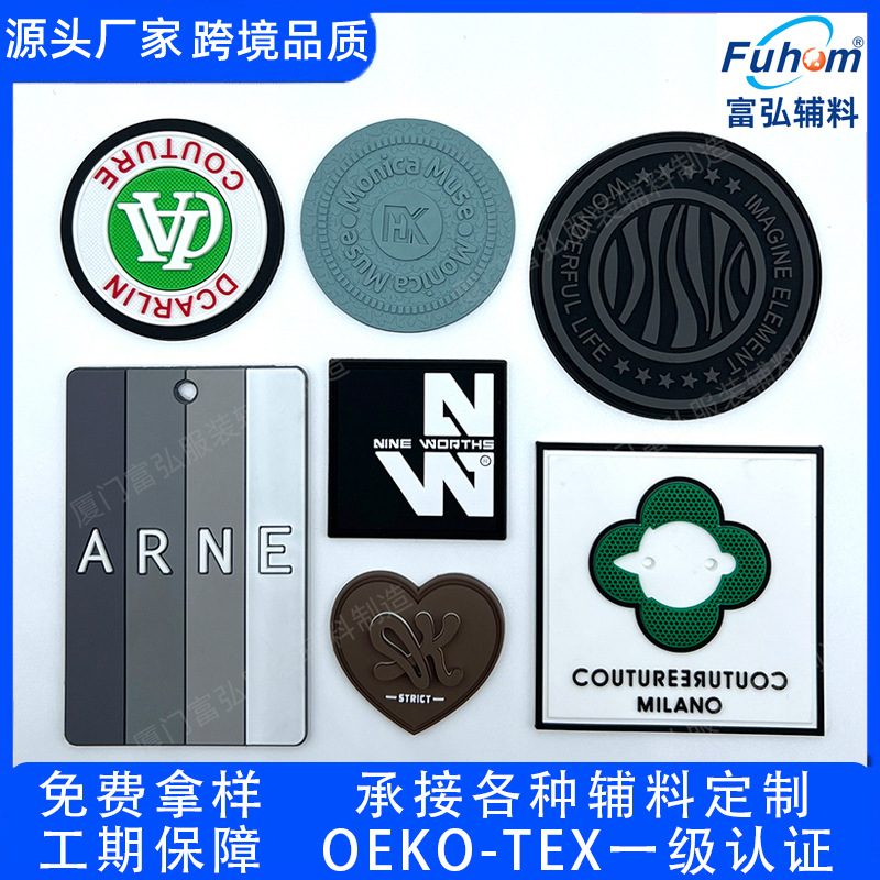환경 친화적인 유럽 표준 PVC 플라스틱 라벨 그라디언트 색상 부드러운 고무 상표 고무 라벨 대비 색상 멀티 컬러 배지 컬러 고무 스탬프