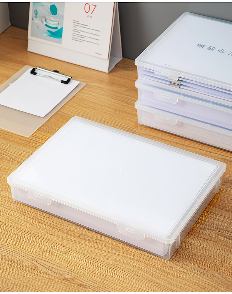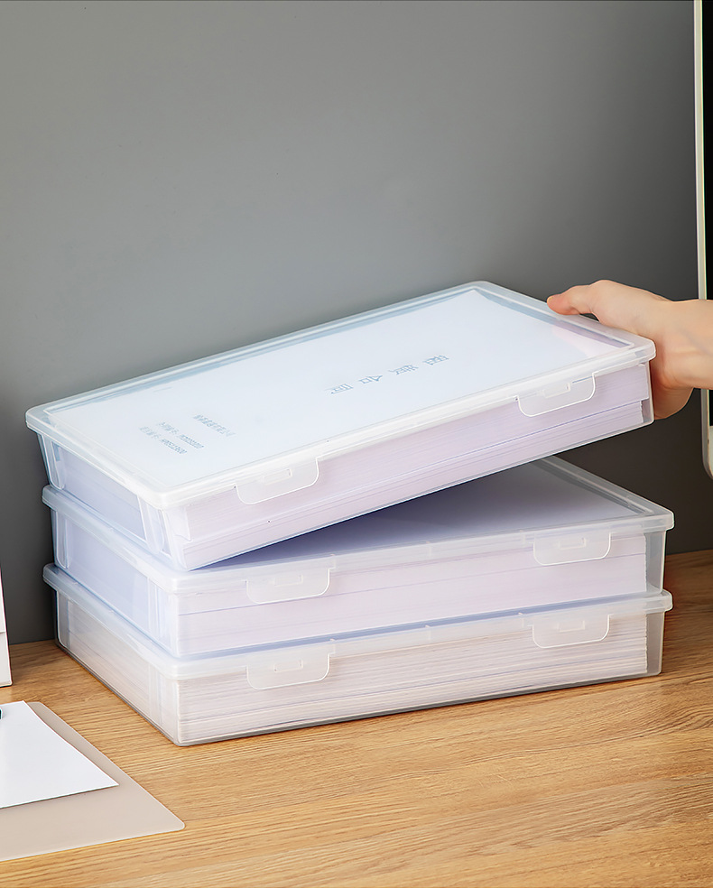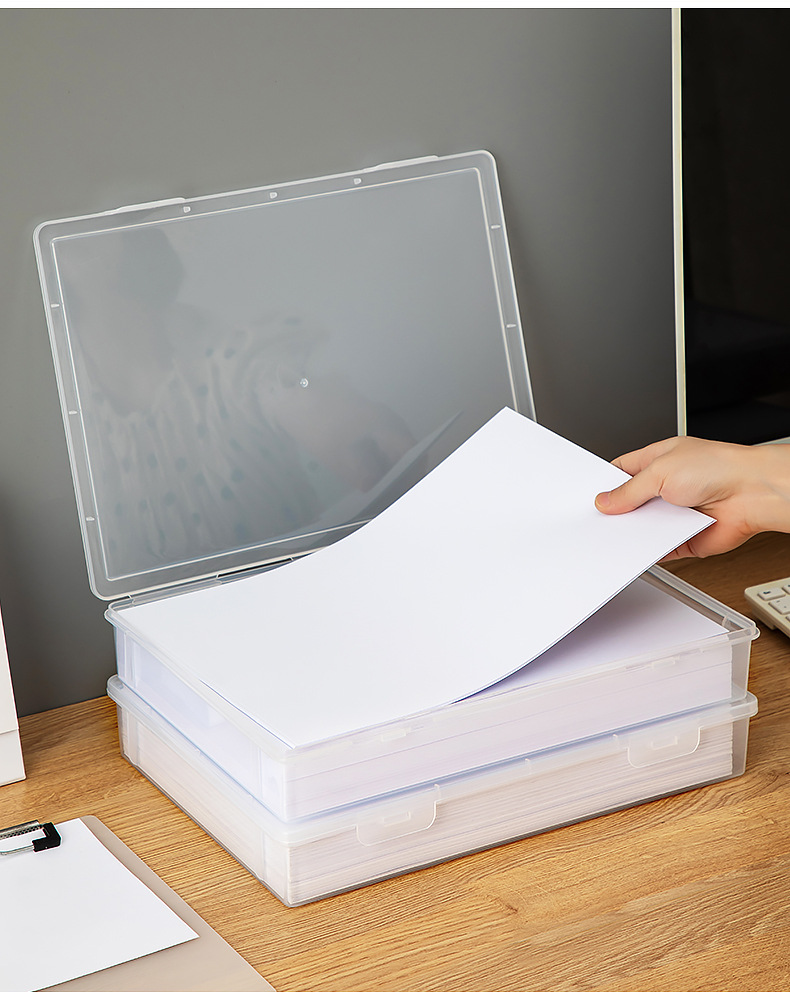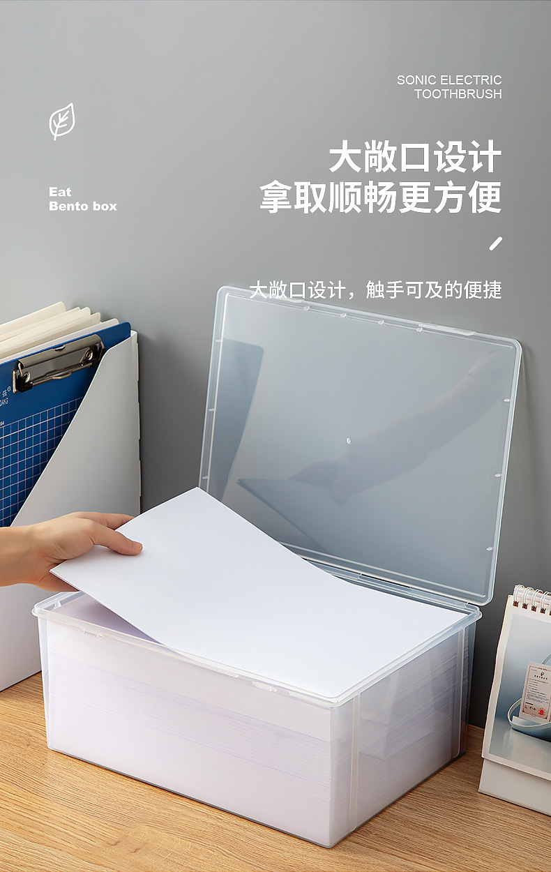 사무실 책상 A4 종이 저장 상자 플라스틱 투명한 책상 적합 상자 사각형 먼지 방지 데스크탑 파일 저장 상자 뚜껑스토어 가기
