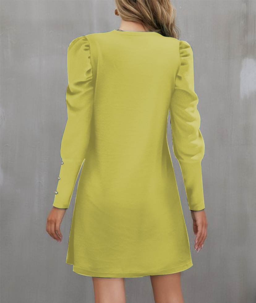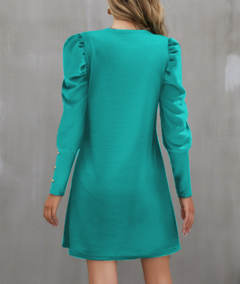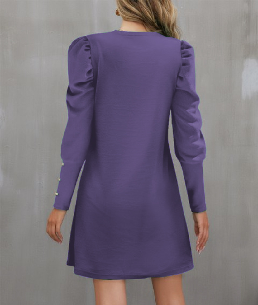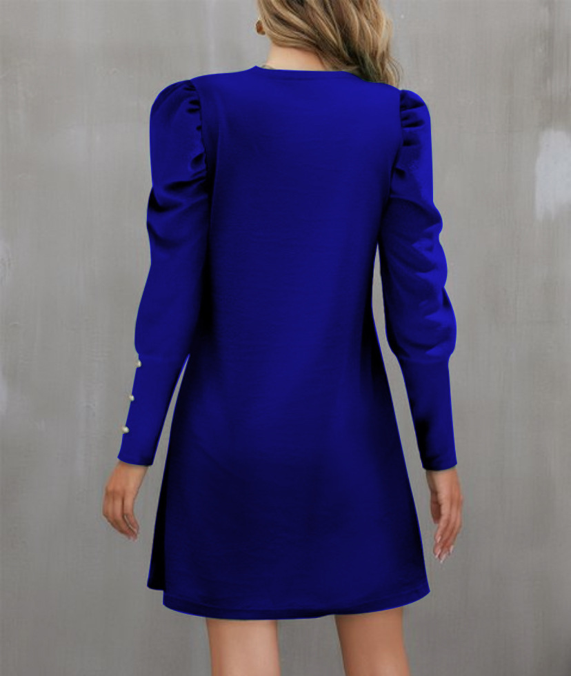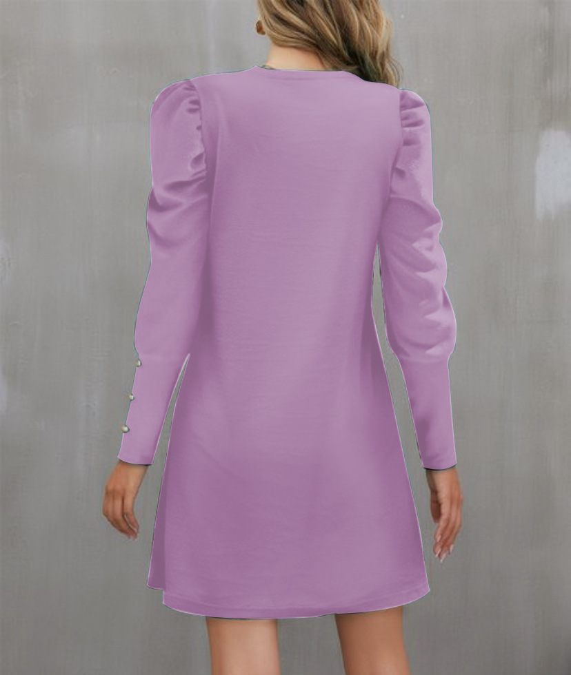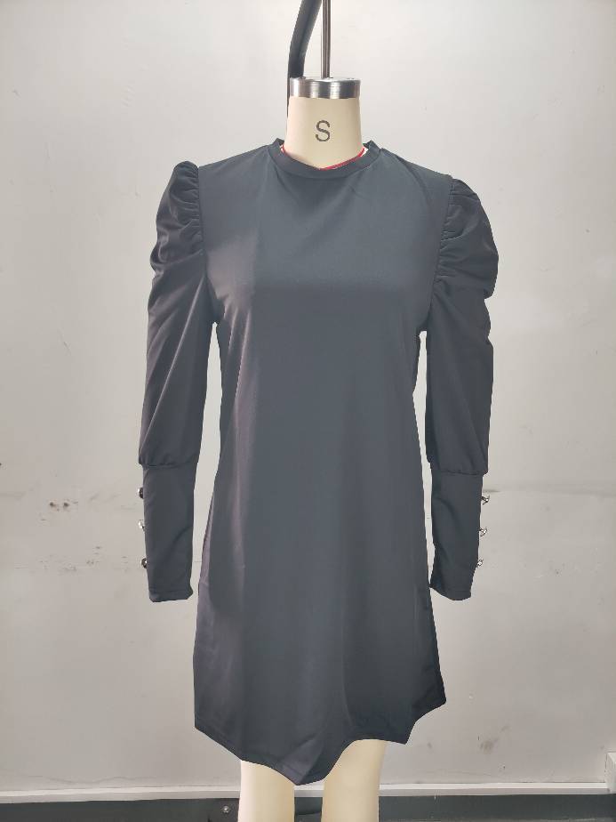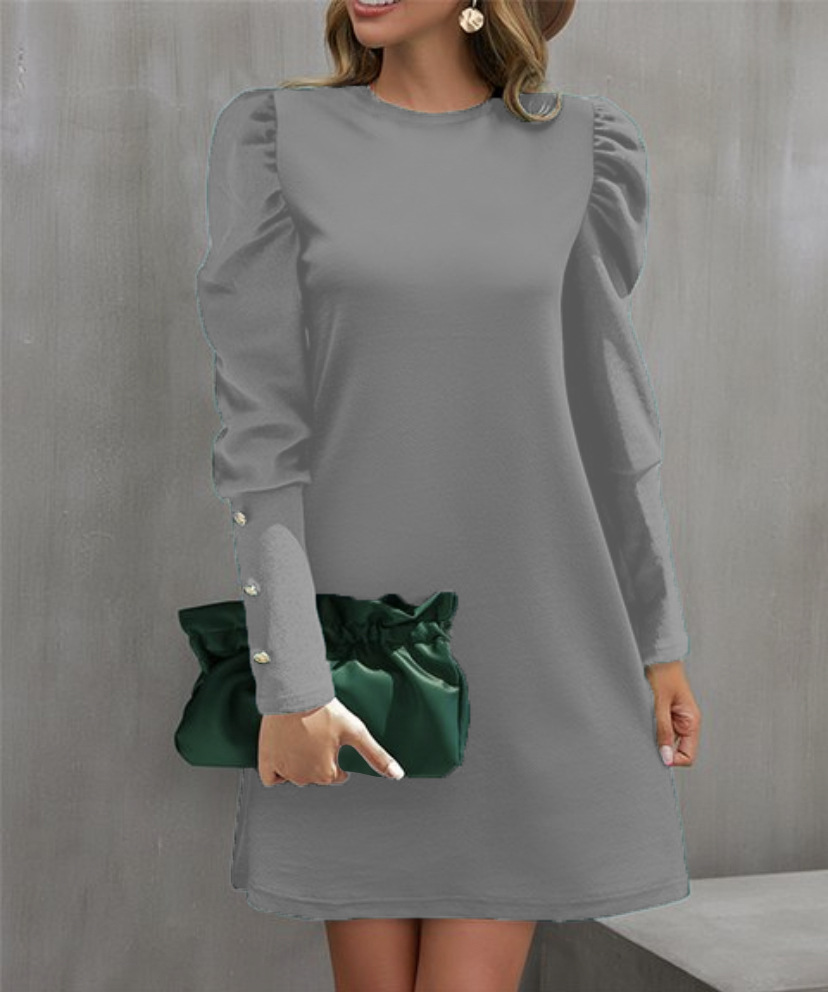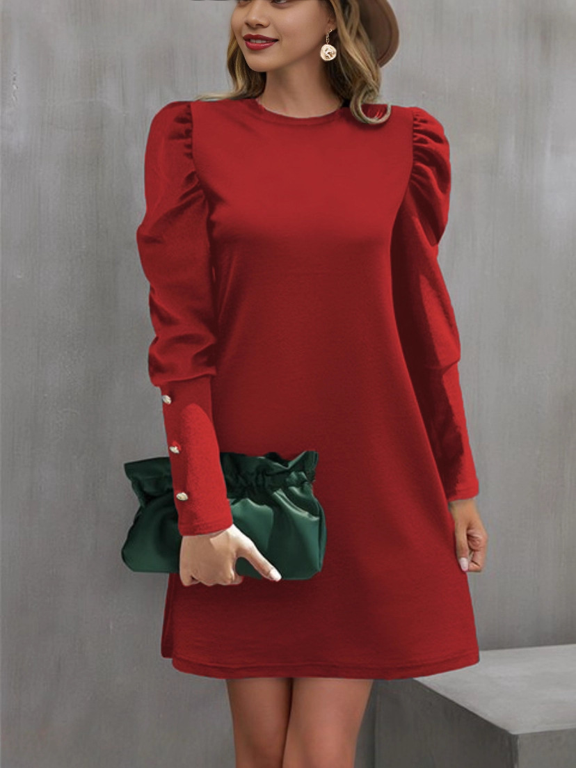 2024 유럽과 미국 국경 여성 의류 아마존 가을과 겨울 새로운 단색 둥근 목 버블 슬리브 버튼 긴 소매 원피스스토어 가기