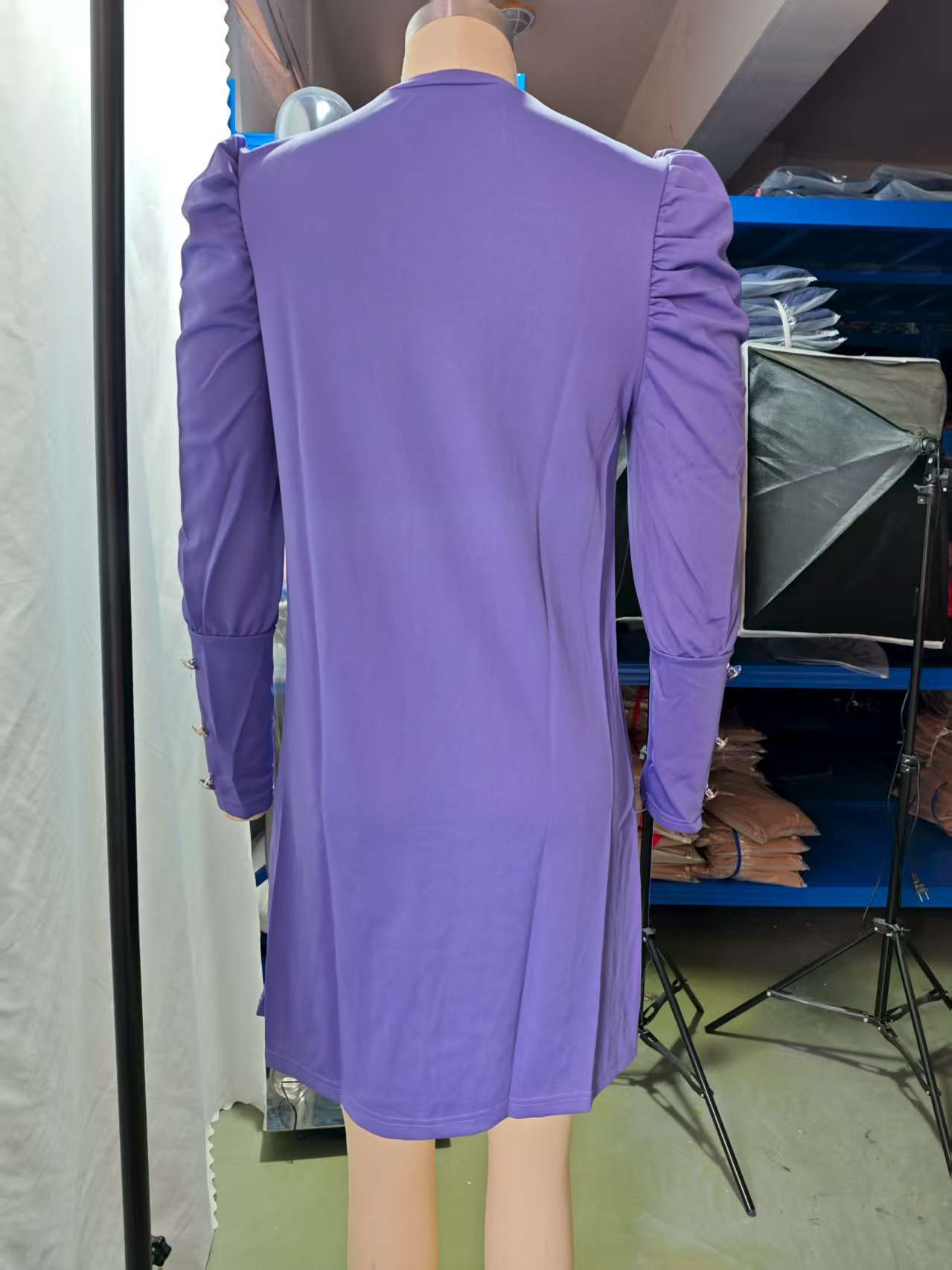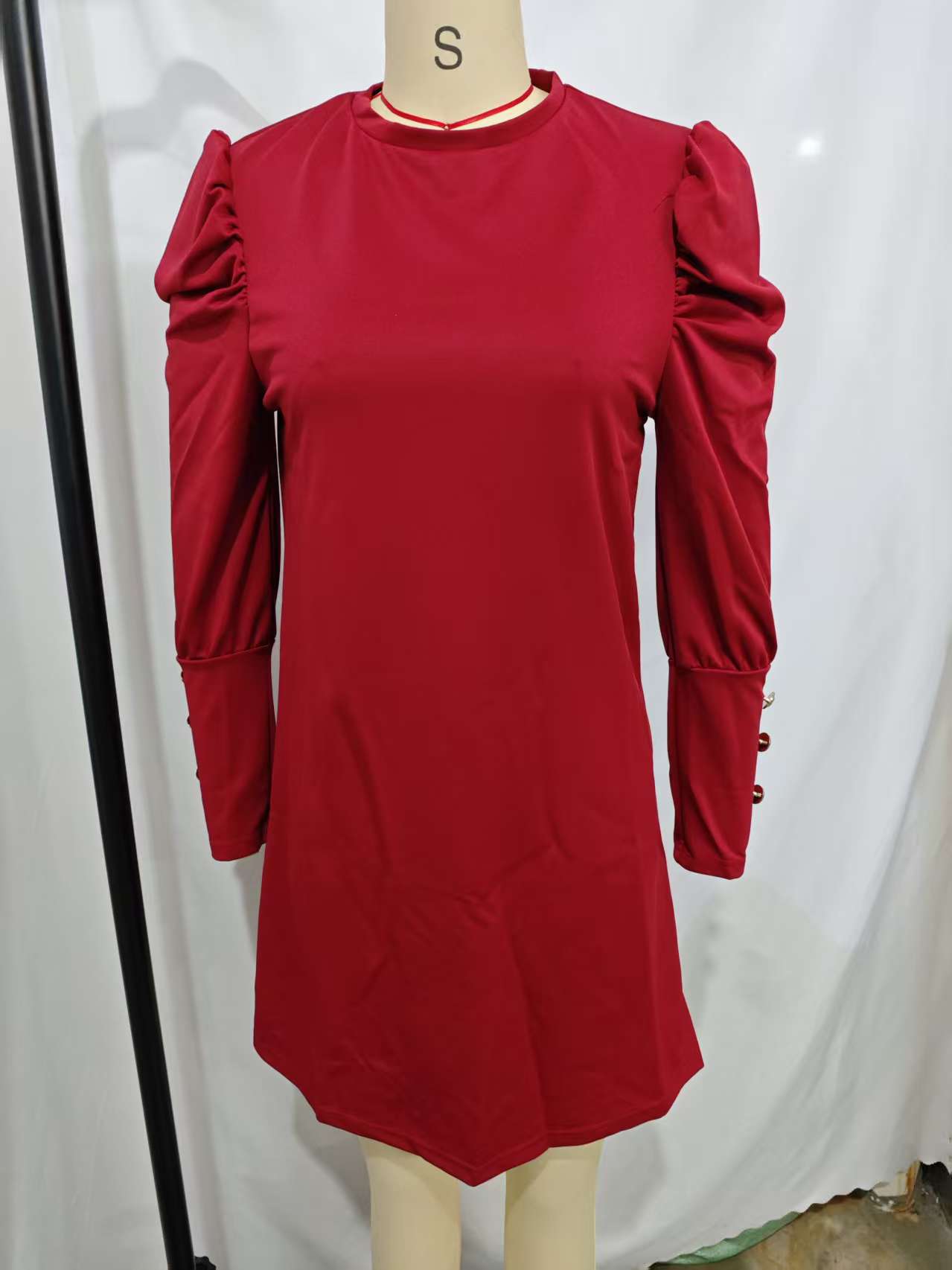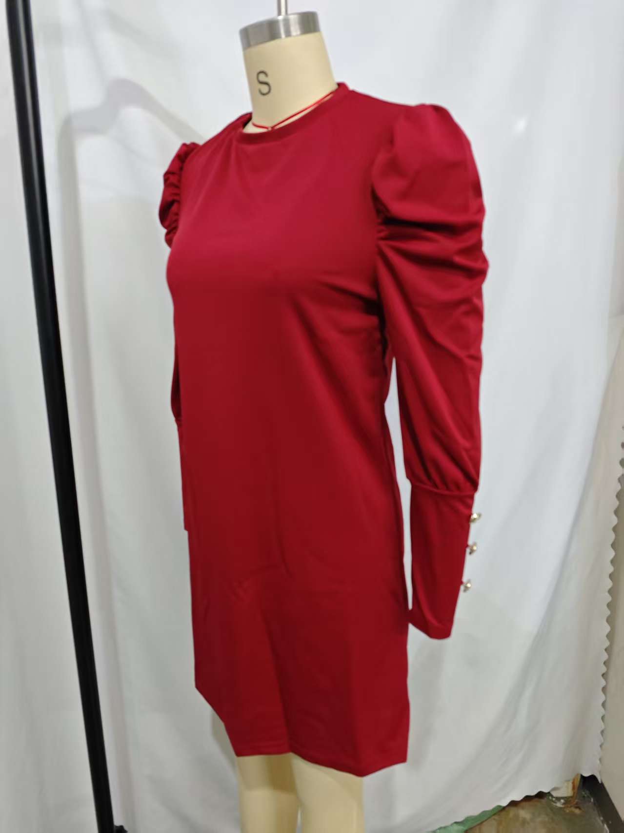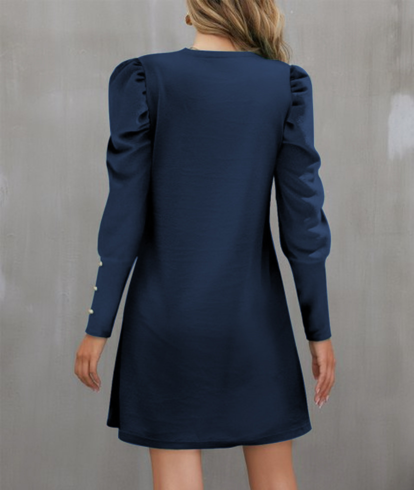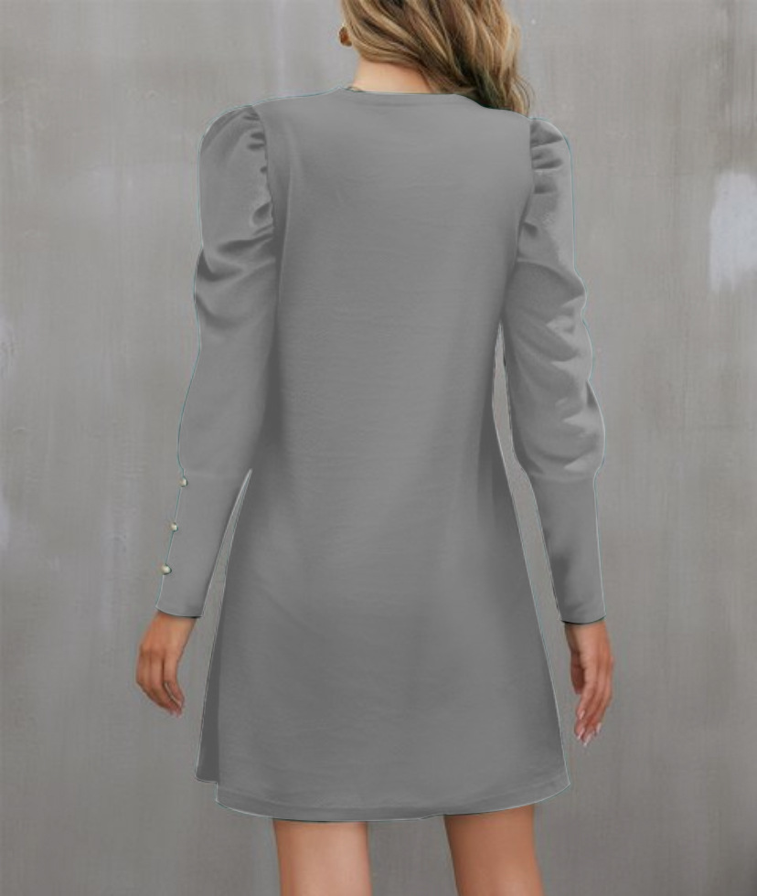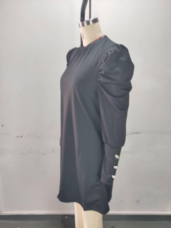 2024 유럽과 미국 국경 여성 의류 아마존 가을과 겨울 새로운 단색 둥근 목 버블 슬리브 버튼 긴 소매 원피스스토어 가기