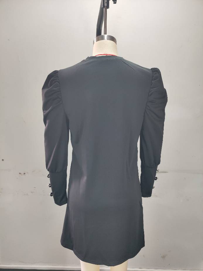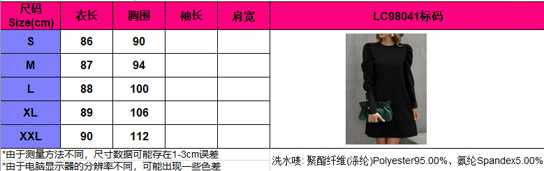 2024 유럽과 미국 국경 여성 의류 아마존 가을과 겨울 새로운 단색 둥근 목 버블 슬리브 버튼 긴 소매 원피스