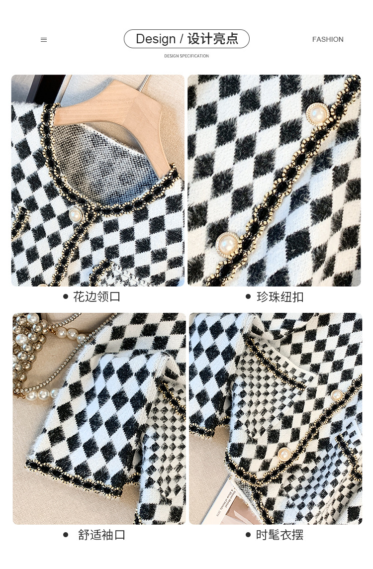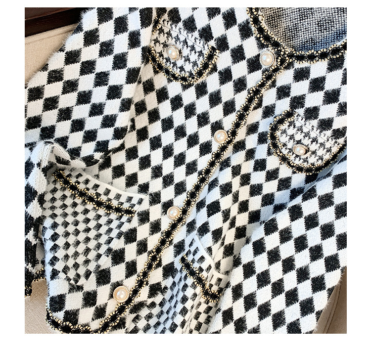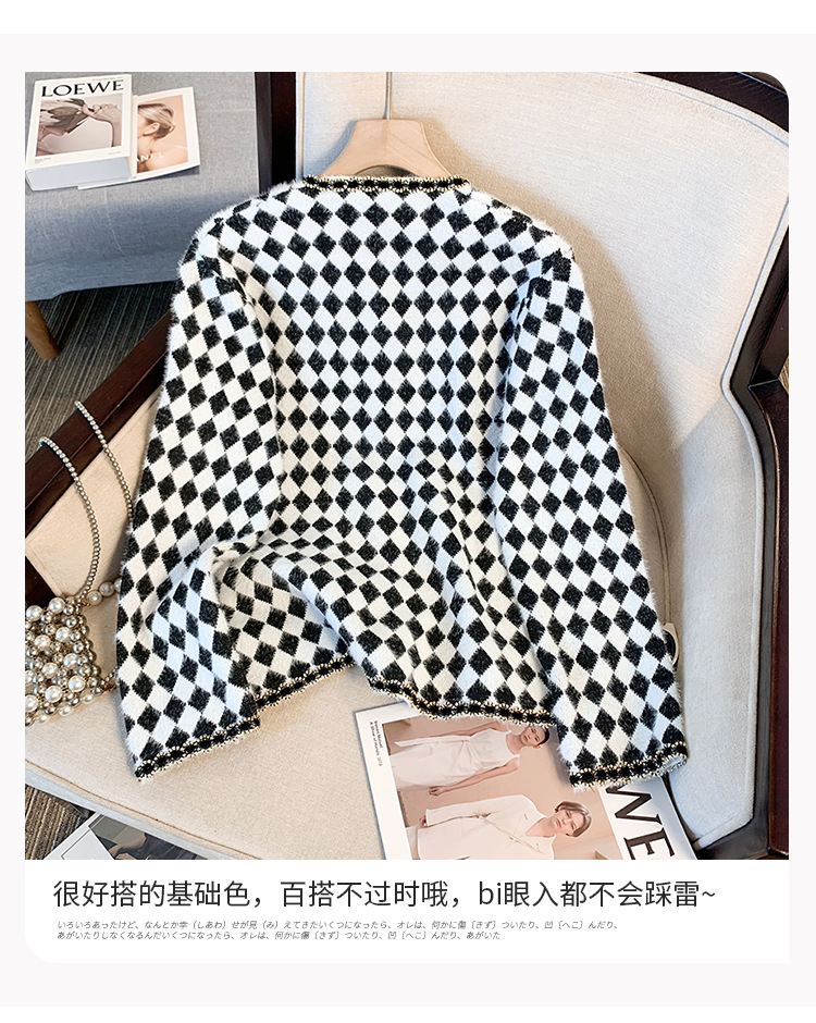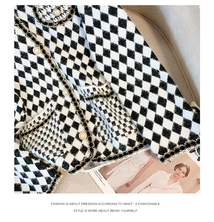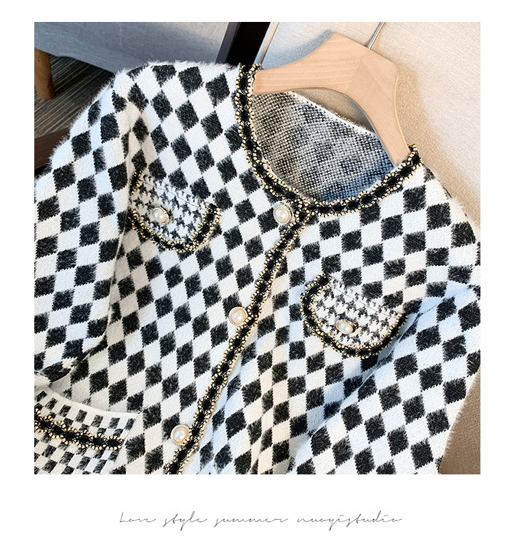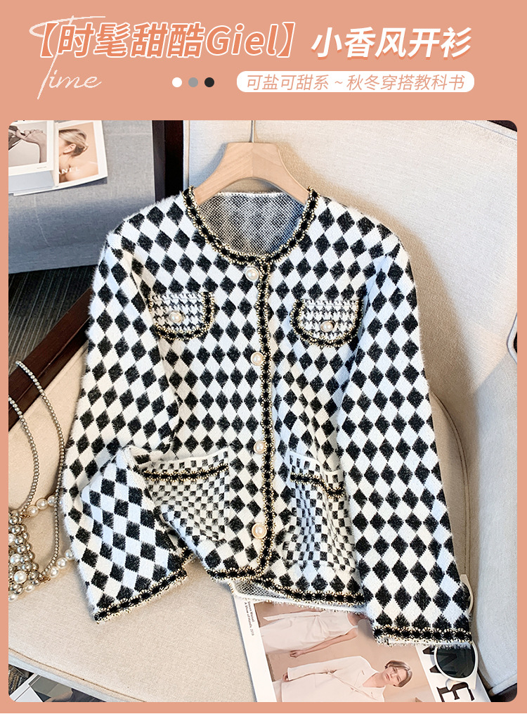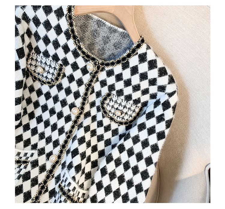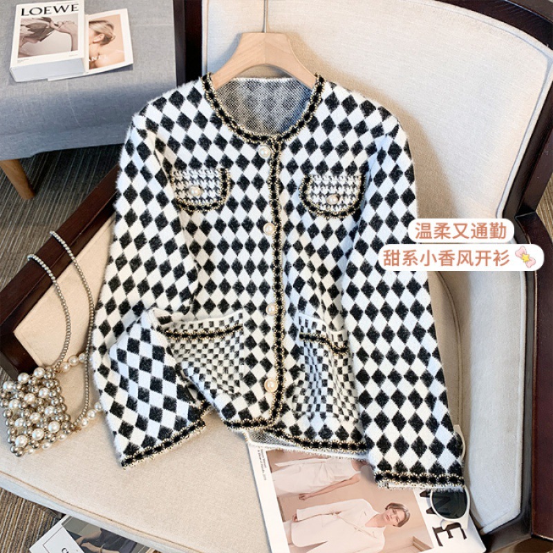 가을과 겨울 새로운 프랑스 스타일 마름모 니트 카디건 여성 디자인 샤넬 스타일 스웨터 코트