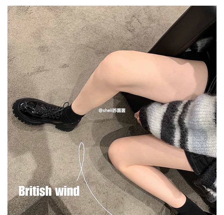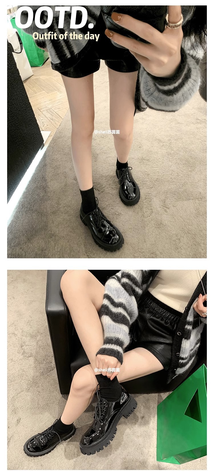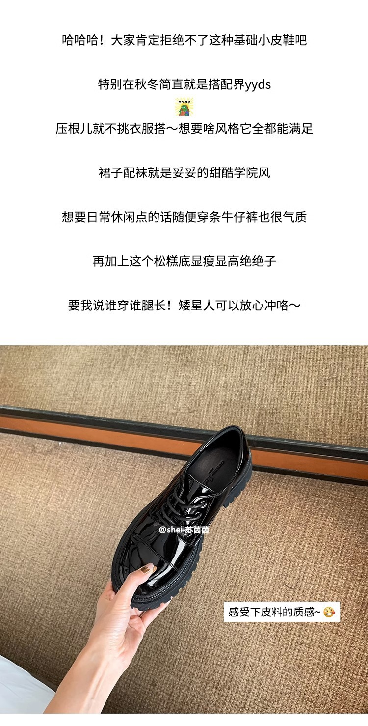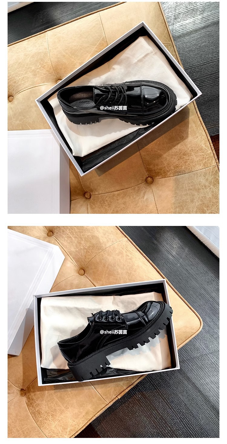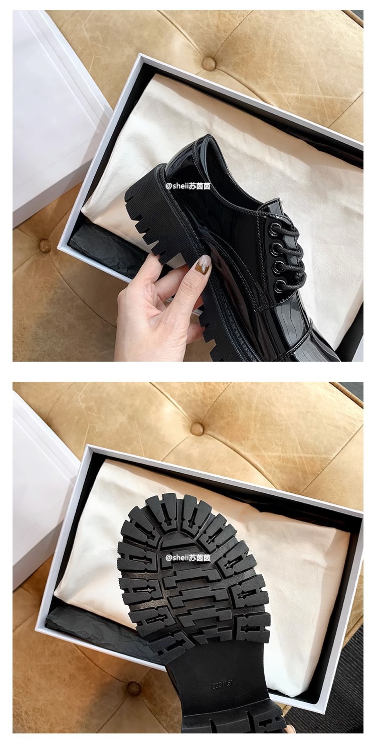 Cowhide Edition ~ Su Yinyin 같은 스타일 로퍼 봄과 가을 영국 스타일 두꺼운 바닥 두꺼운 힐 레이스 업 더비 jk 여성용 작은 가죽 신발
