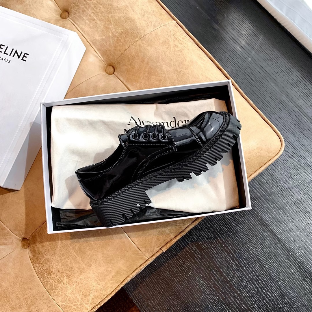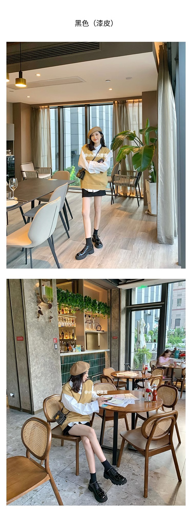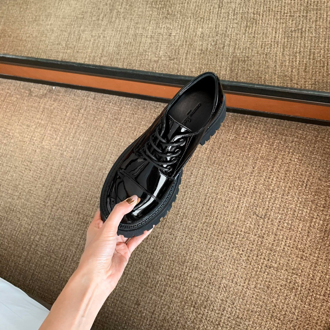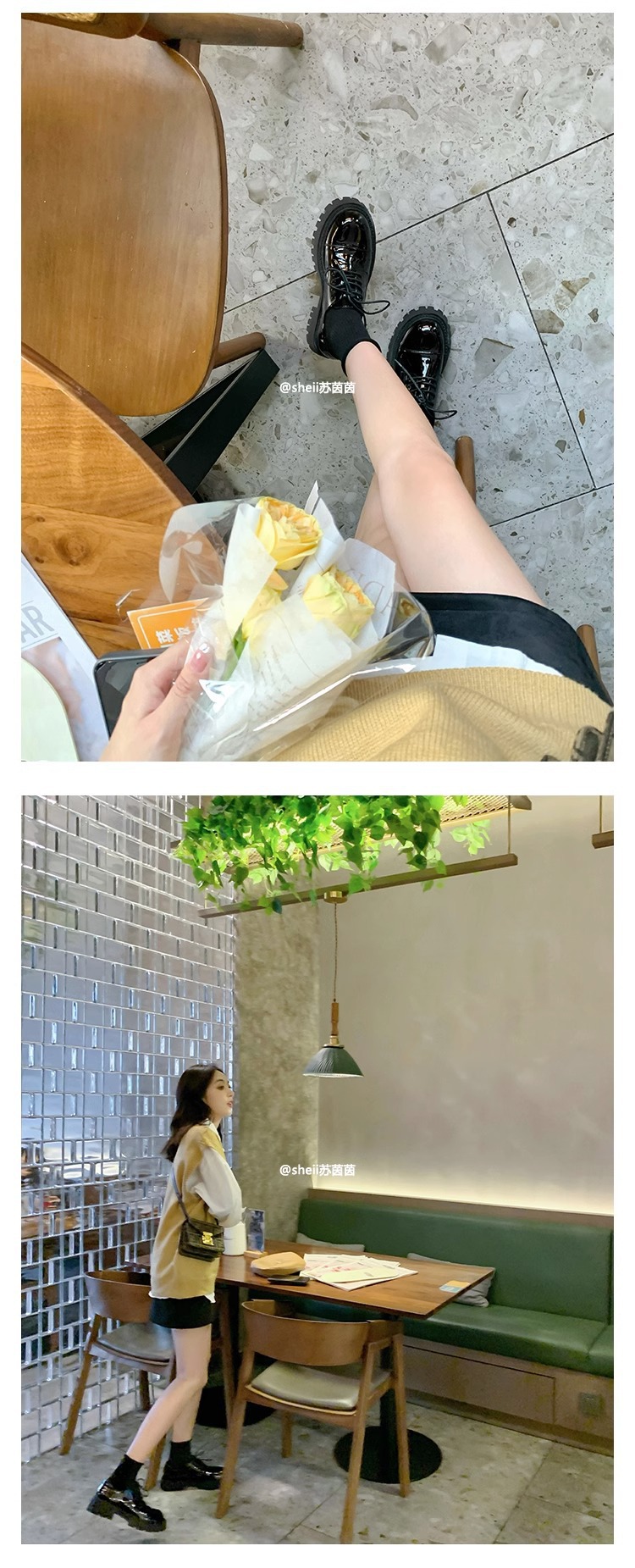 Cowhide Edition ~ Su Yinyin 같은 스타일 로퍼 봄과 가을 영국 스타일 두꺼운 바닥 두꺼운 힐 레이스 업 더비 jk 여성용 작은 가죽 신발