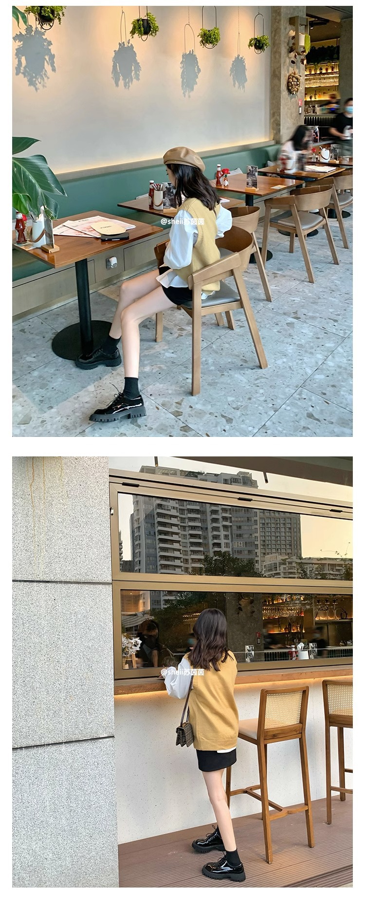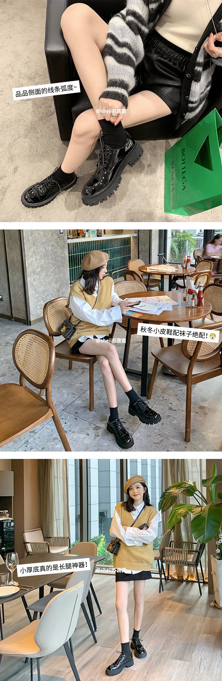 Cowhide Edition ~ Su Yinyin 같은 스타일 로퍼 봄과 가을 영국 스타일 두꺼운 바닥 두꺼운 힐 레이스 업 더비 jk 여성용 작은 가죽 신발스토어 가기