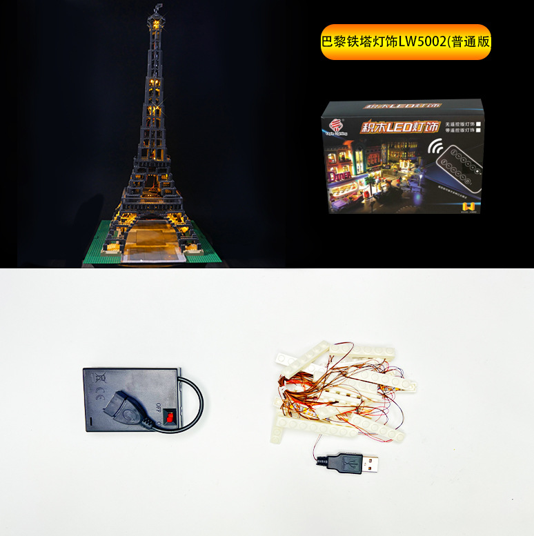 • 빌딩 블록이없는 파리 타워 조명 (USB 버전 + 배터리 박스)