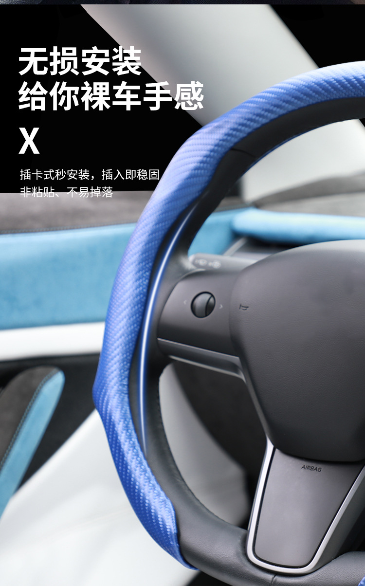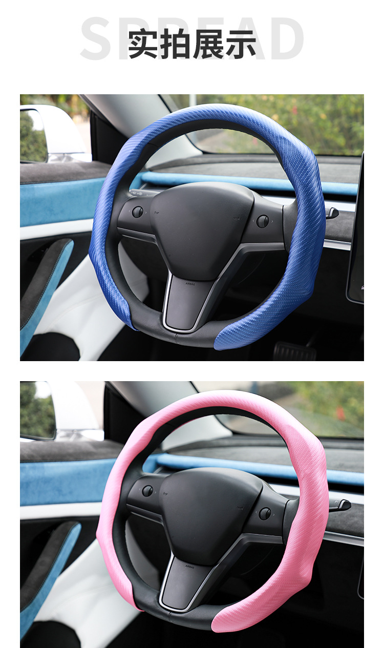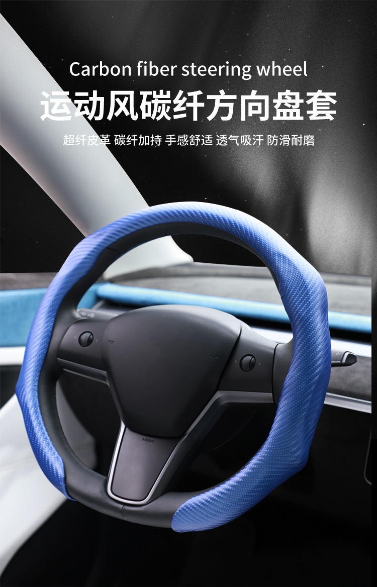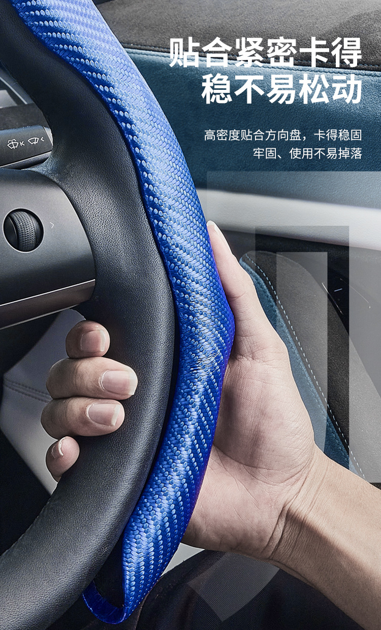 스포츠 카본 파이버 가죽 스티어링 휠 커버, 미끄럼 방지, 땀 흡수, 사계절 사용 가능 스티어링 휠 커버스토어 가기