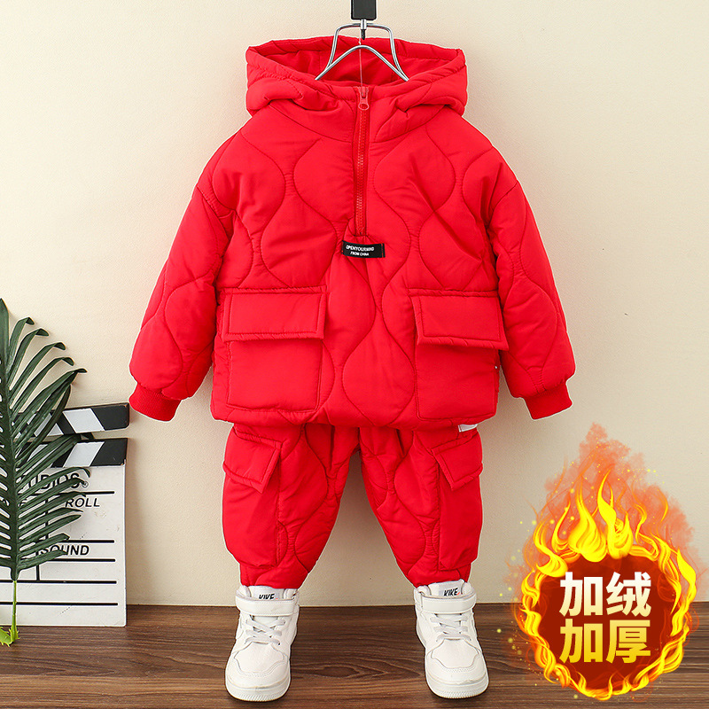 소년 면화 의류 정장 2025 새로운 스타일 소년 아기 겨울 면화 재킷 어린이 겨울 의류 플러스 벨벳 두꺼운 면화 의류