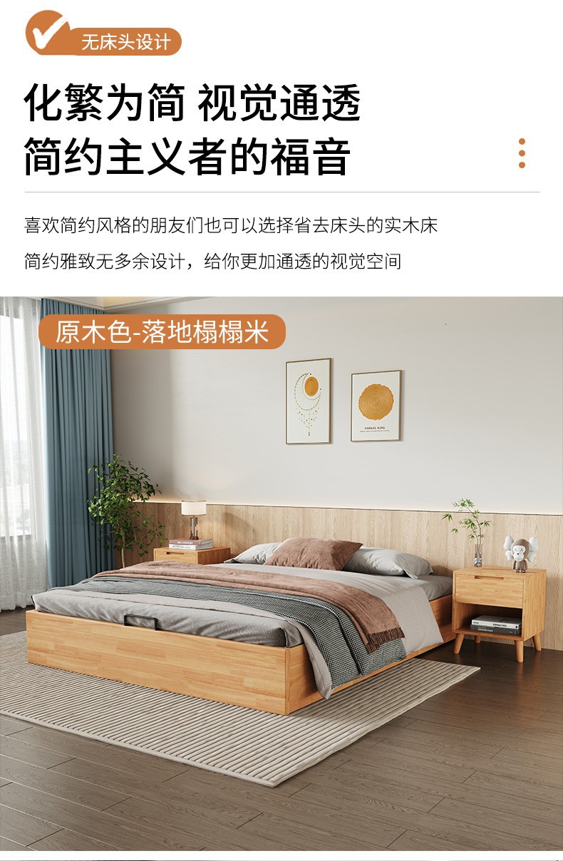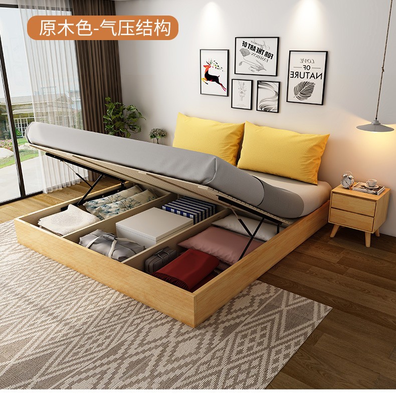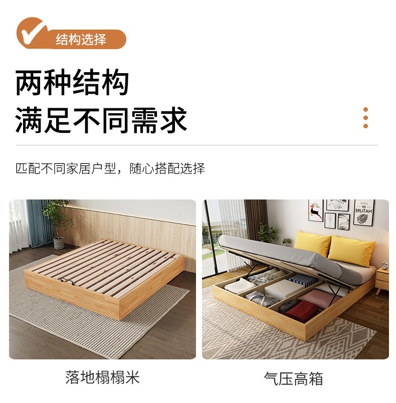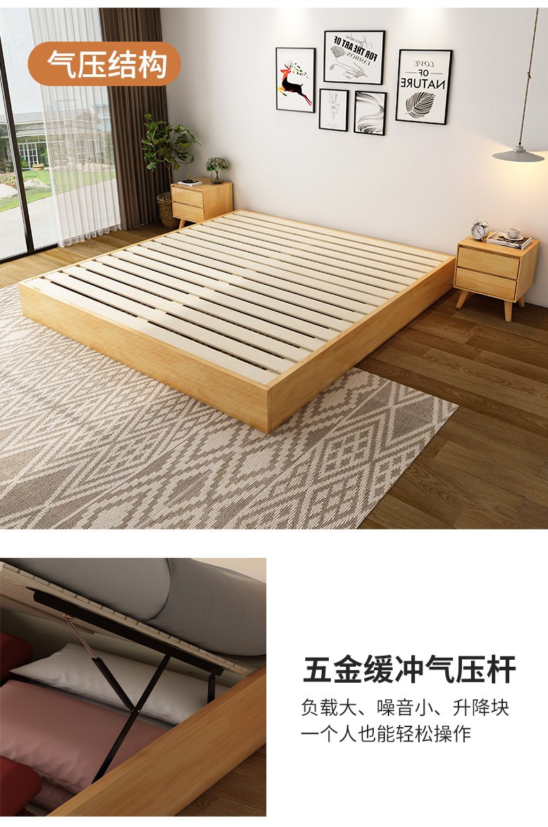 다타미 침대 프레임 단단한 나무 현대적인 미니멀리스트 비 침대 사이드 등받이 줄 해골 호텔 B & B 단단한 나무 침대 더블 침대스토어 가기