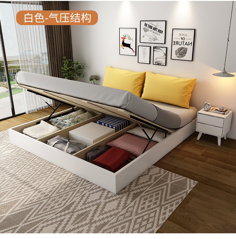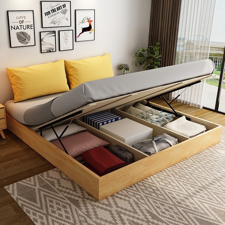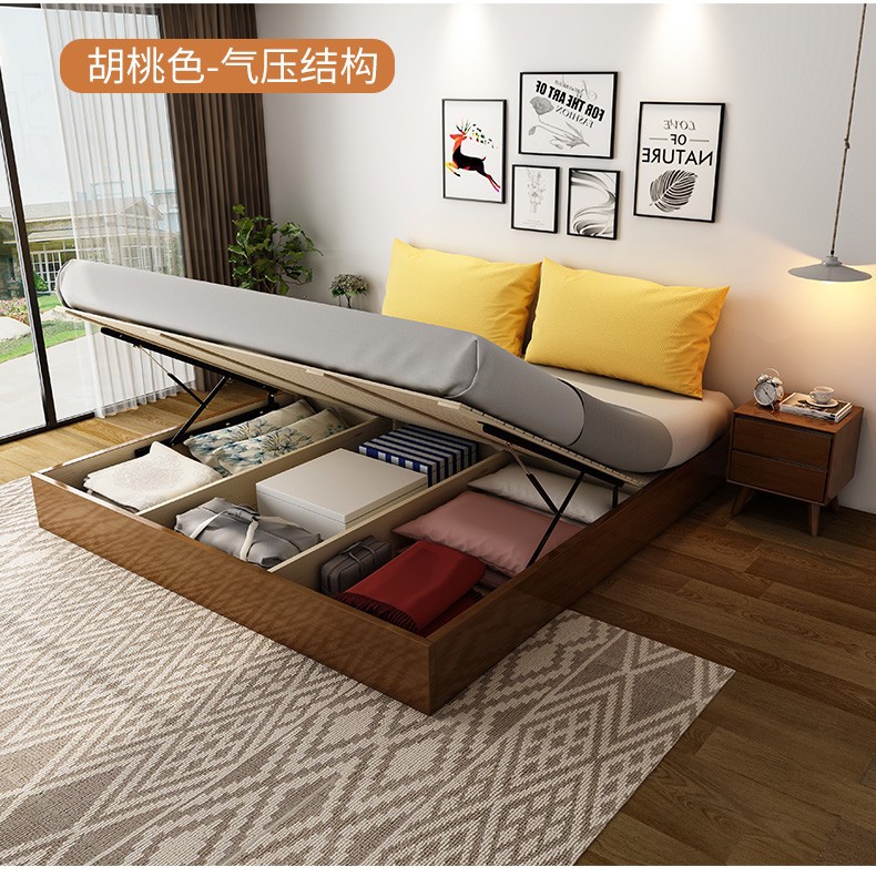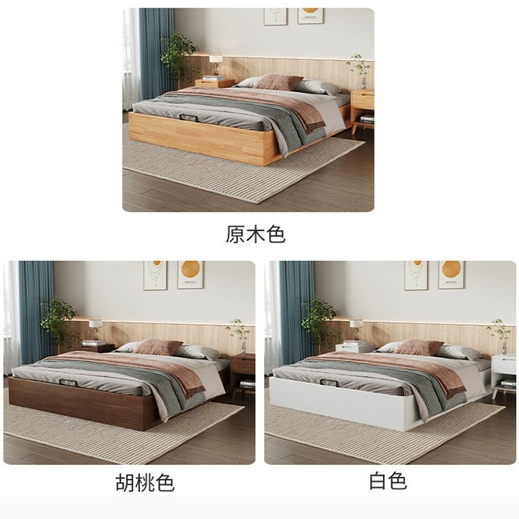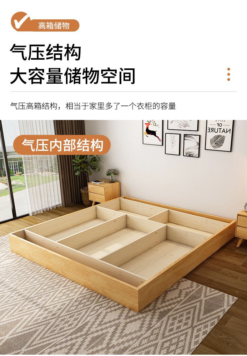 다타미 침대 프레임 단단한 나무 현대적인 미니멀리스트 비 침대 사이드 등받이 줄 해골 호텔 B & B 단단한 나무 침대 더블 침대스토어 가기