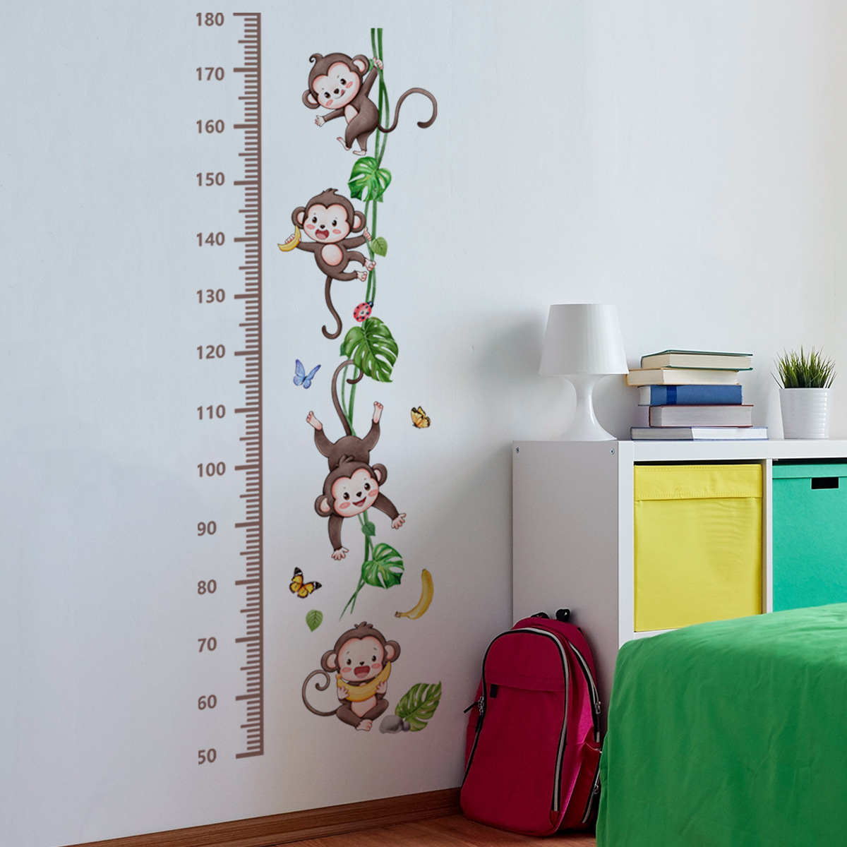 BM2051-KQ 만화 가지 덩굴 원숭이 높이 스티커 높이 통치자 어린이 방 장식 벽 스티커 자체 접착