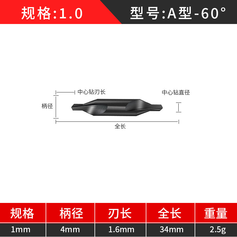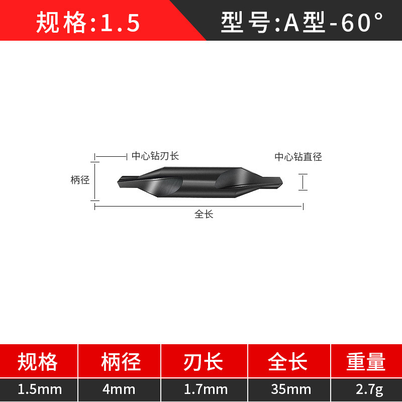 中心钻 中心钻头 A型172x1x1.5x2x2.5x3x4x5x6x8x10 mm