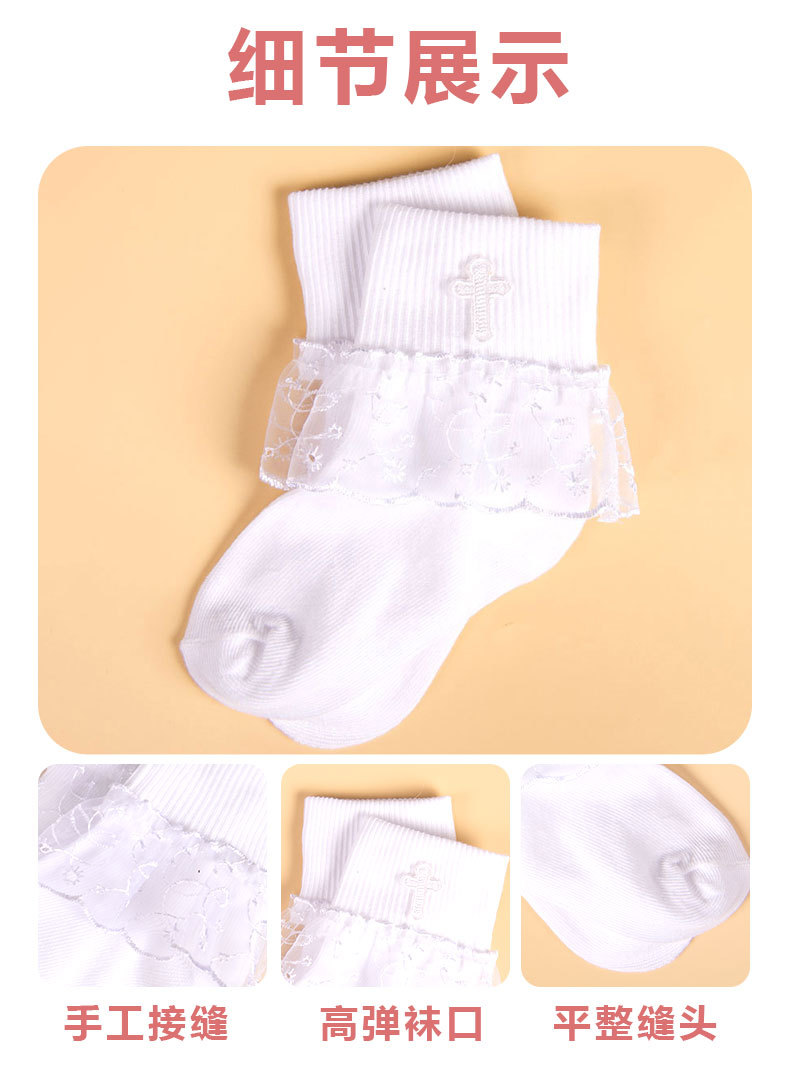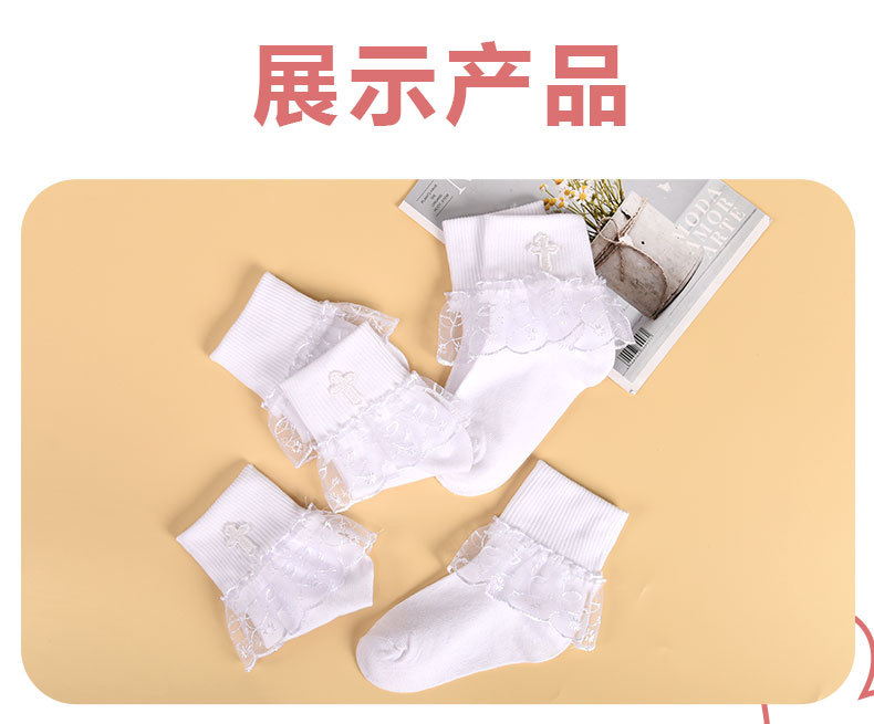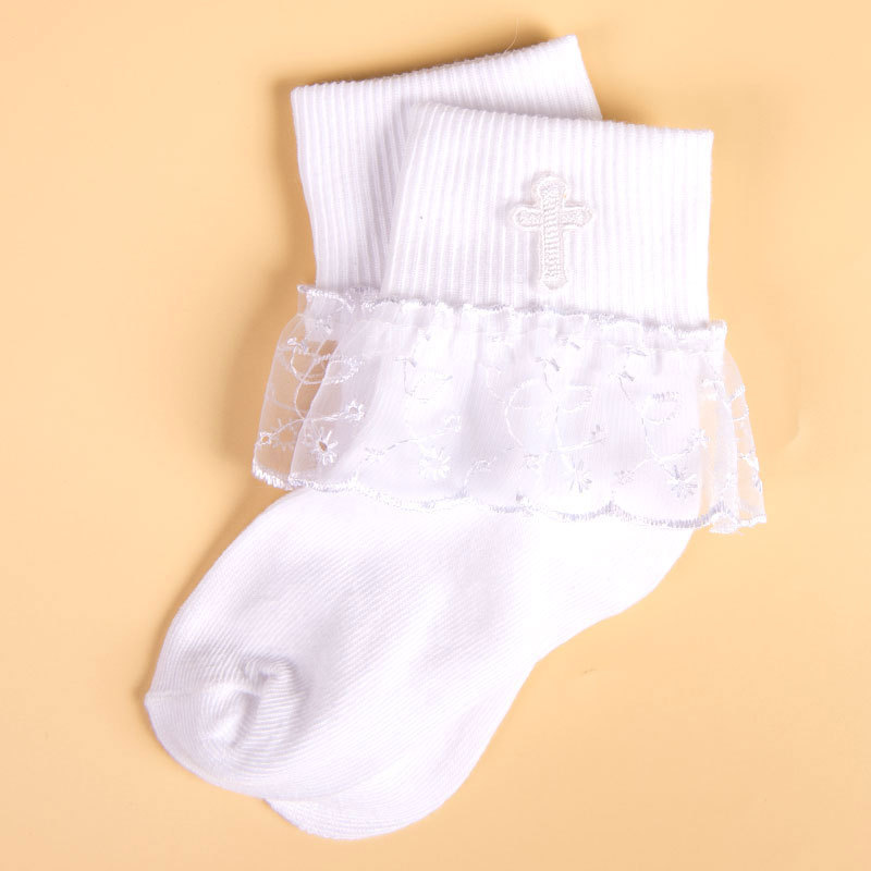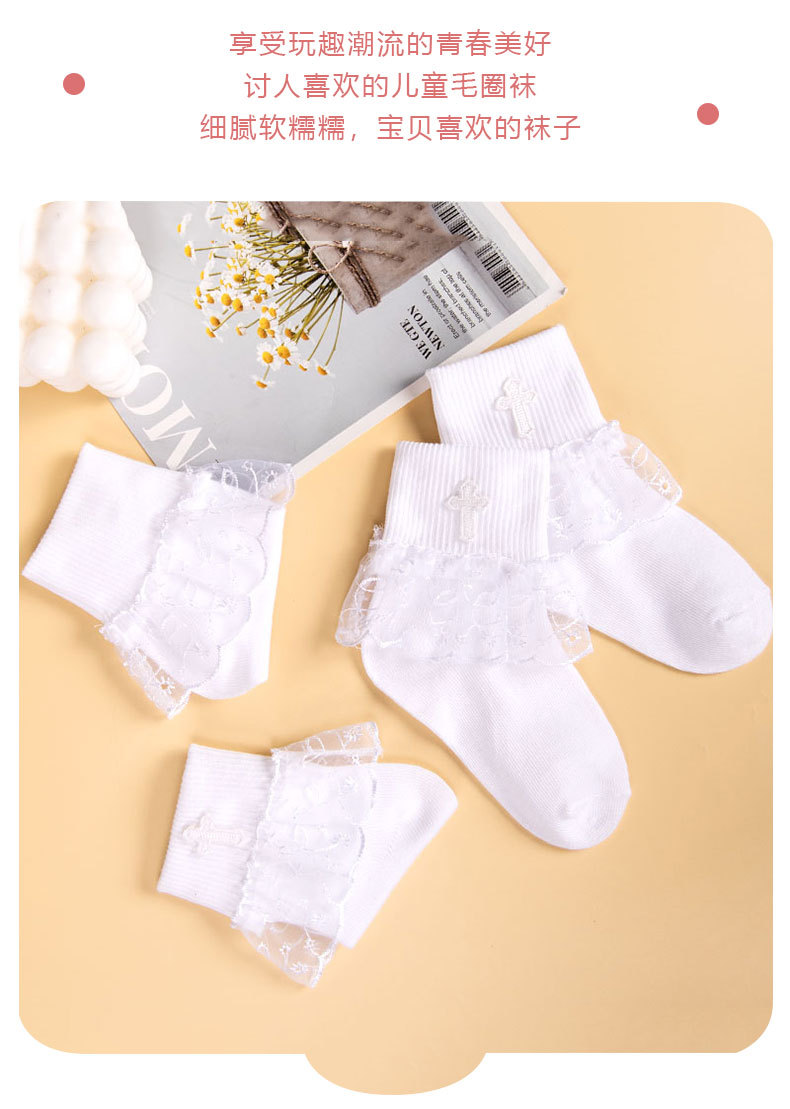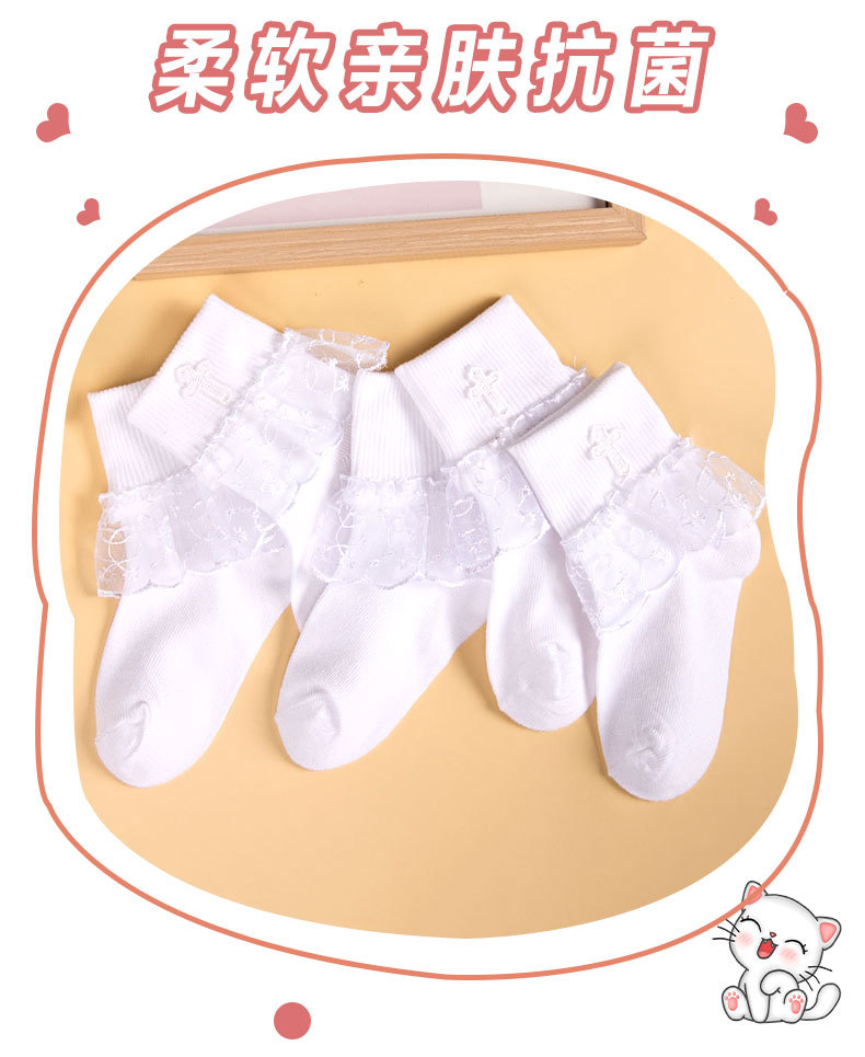 어린이 크로스 프린트 레이스 레이스 레이스 양말 소녀의 편안한 통기성 메쉬 양말 귀여운 순수한 흰색 공주 중간 종아리 길이 양말
