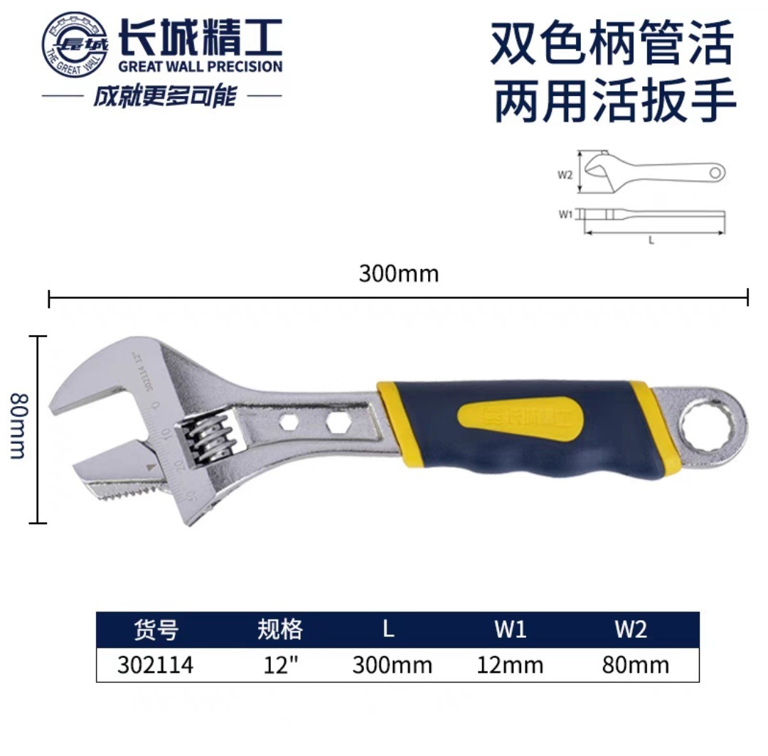 만리장성 세이코 이중 목적 조절 가능한 렌치 다기능 파이프 렌치 대형 오픈 조절 가능한 렌치 조정 가능한 플레이트스토어 가기