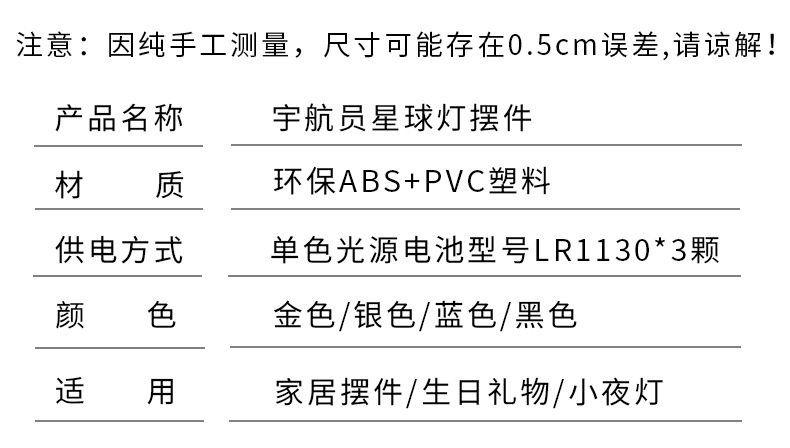 • No.11 황금 우주 비행사 행성 조명 (컬러 박스)