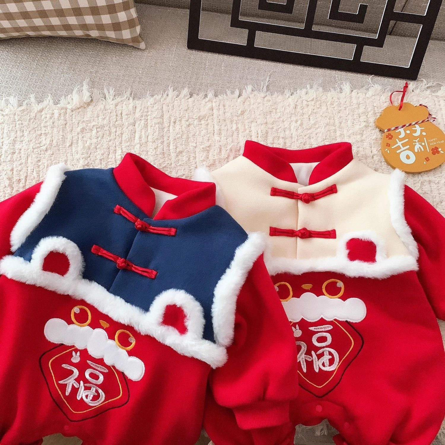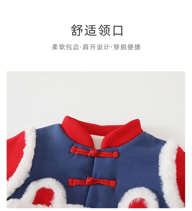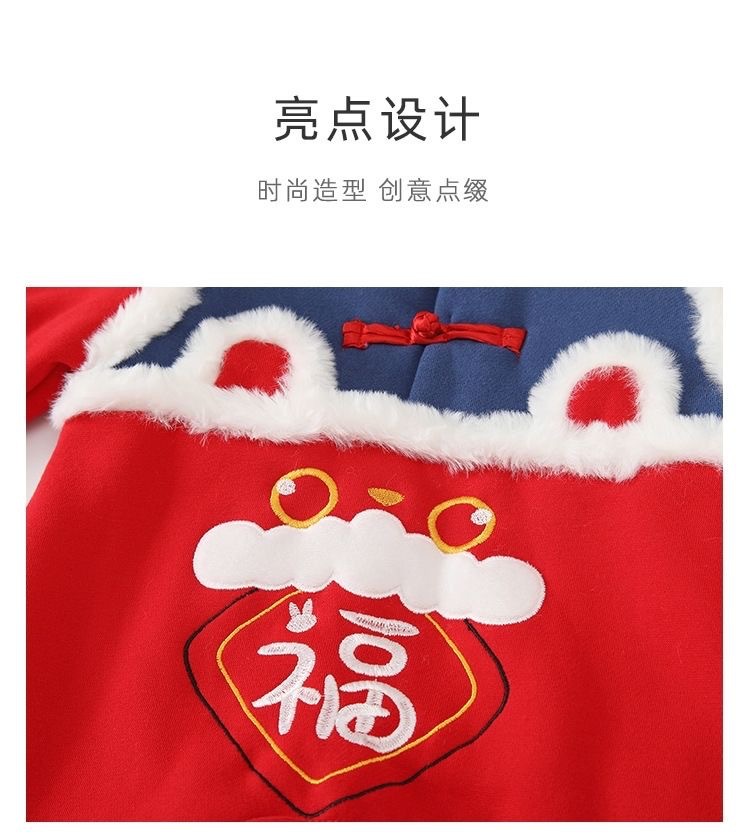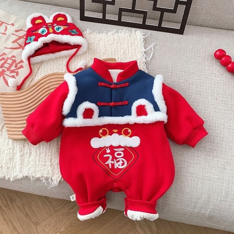 중국 스타일 아기 점프 수트 축제 기모 두껍게 새해 인사말 옷 남녀 아기 드래곤 년 따뜻한 롬퍼 나들이 옷스토어 가기