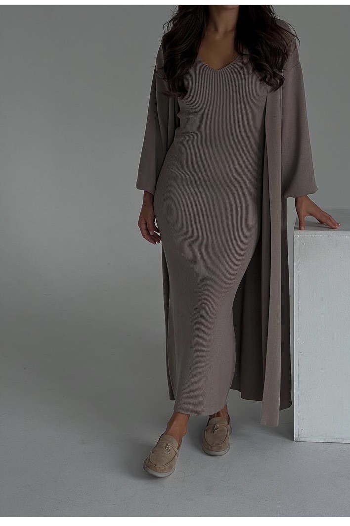 가을 2023 새로운 유럽과 미국의 아마존 국경 패션 단색 긴 스웨터 원피스 우아한 세트 여성