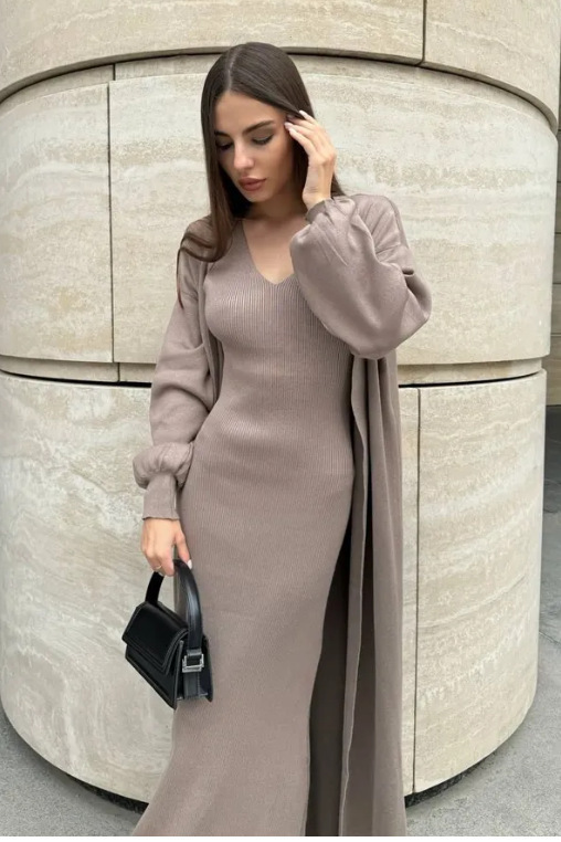 가을 2023 새로운 유럽과 미국의 아마존 국경 패션 단색 긴 스웨터 원피스 우아한 세트 여성스토어 가기