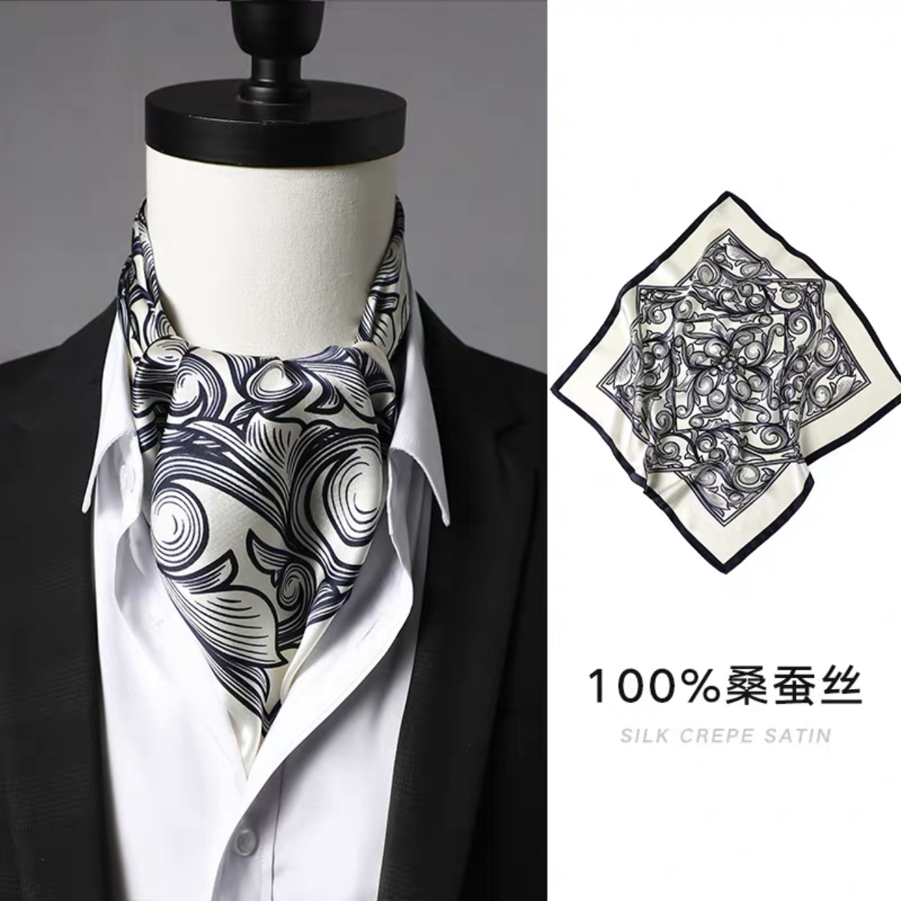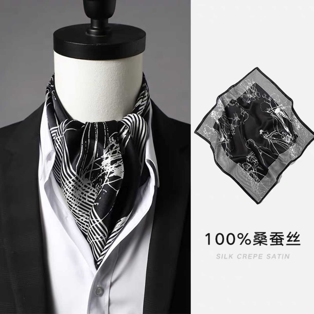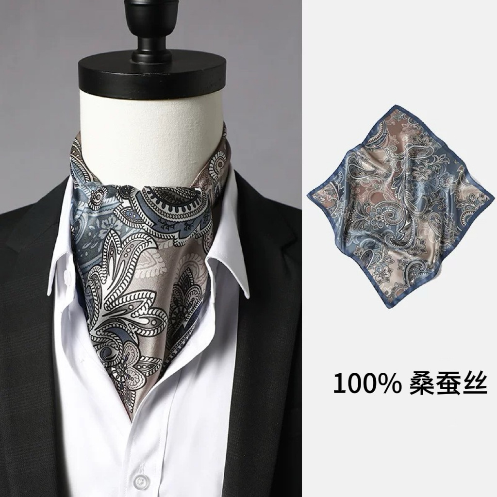 실크 남성 스카프 작은 사각형 스카프 2023 봄과 가을 새로운 세트 복고풍 영국 칼라 스카프 뽕나무 실크 스카프스토어 가기