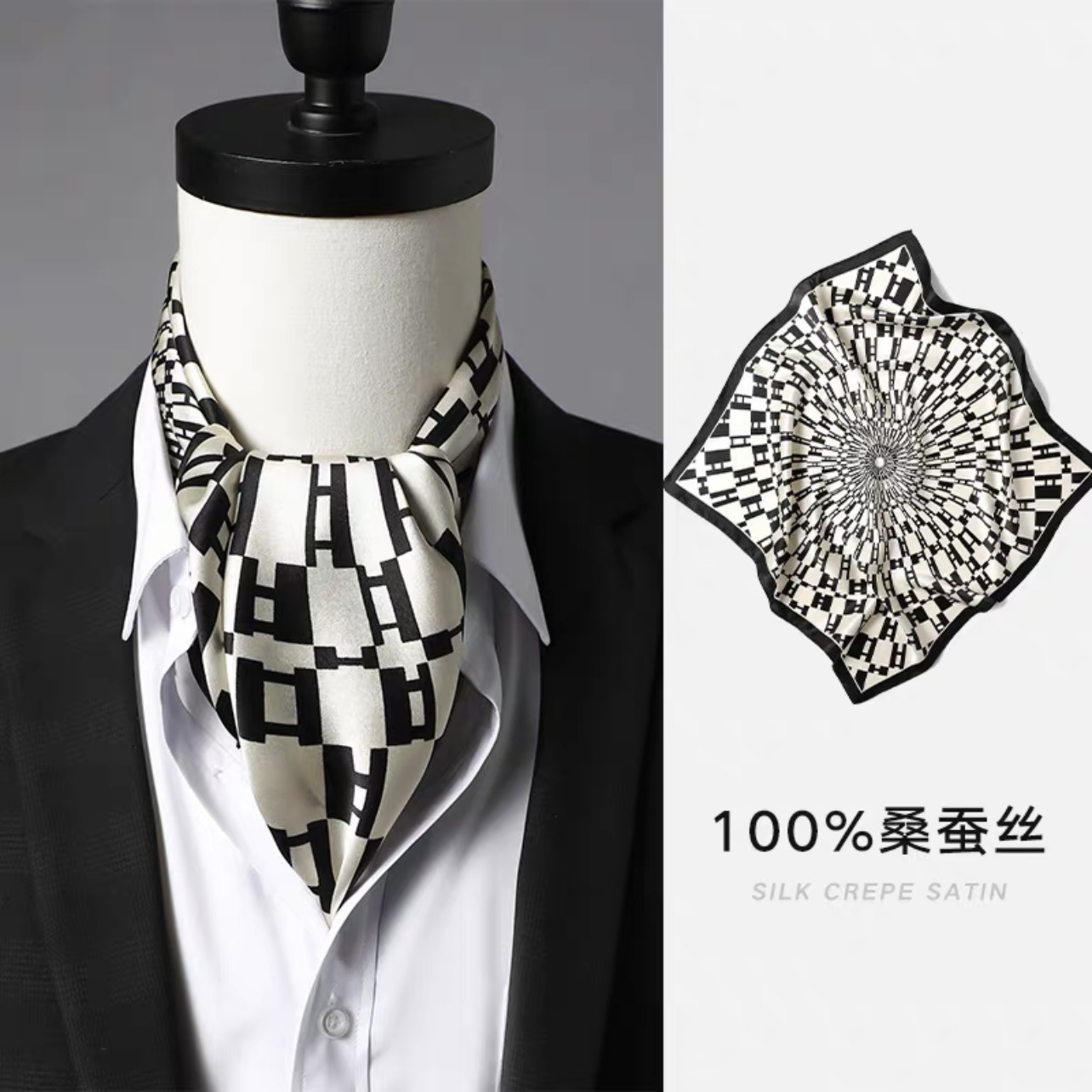 실크 남성 스카프 작은 사각형 스카프 2023 봄과 가을 새로운 세트 복고풍 영국 칼라 스카프 뽕나무 실크 스카프