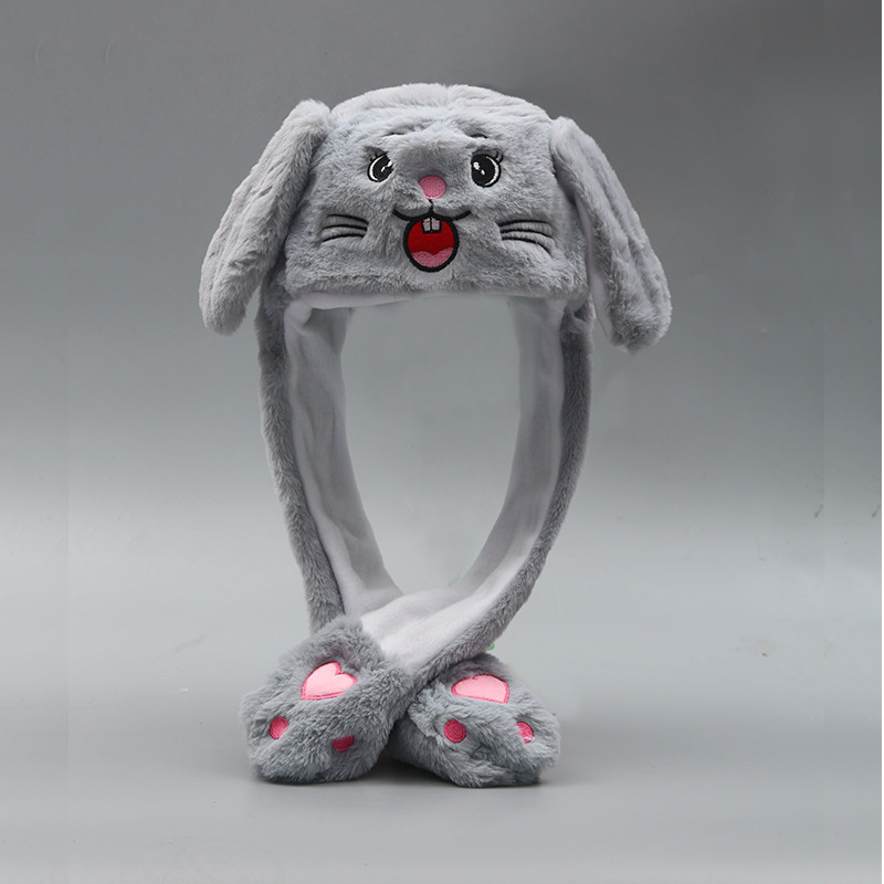 토끼 귀 모자, 귀가 움직이는 귀여운 어린이 에어백 모자, 스카프와 장갑이 하나로 된 2024년 신제품스토어 가기