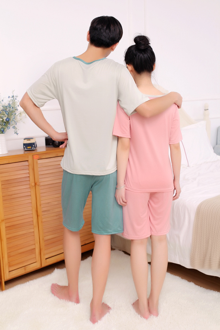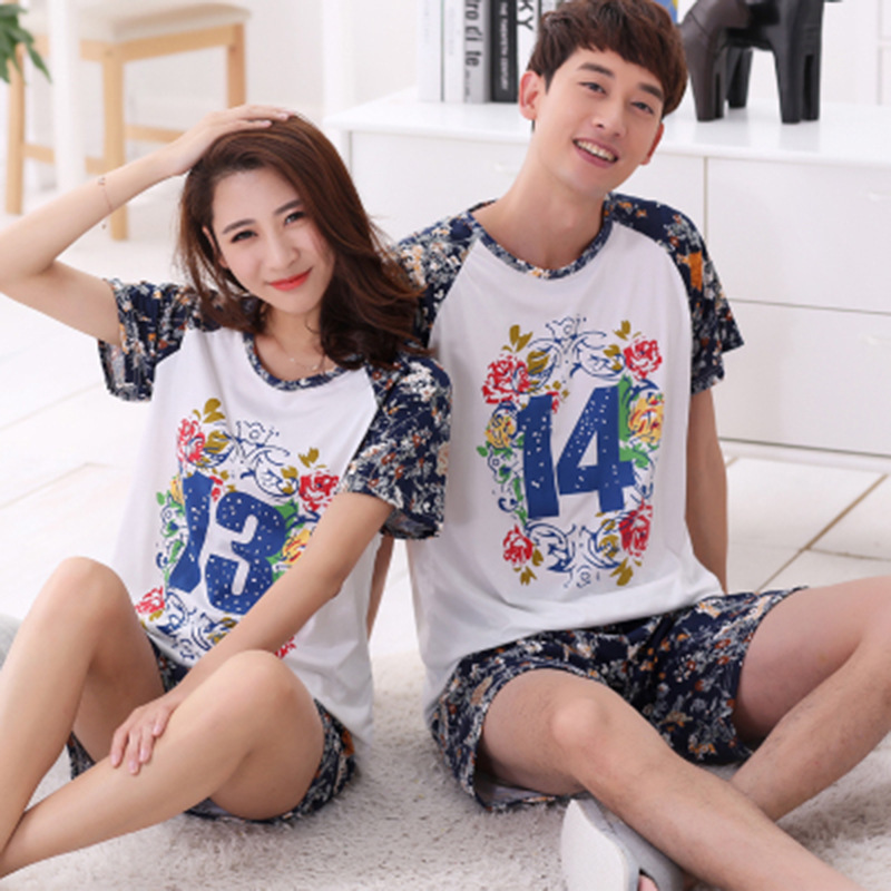 대외 무역 반팔 커플 잠옷 세트 여름 여성 남성 홈웨어 도매 원피스 배달스토어 가기
