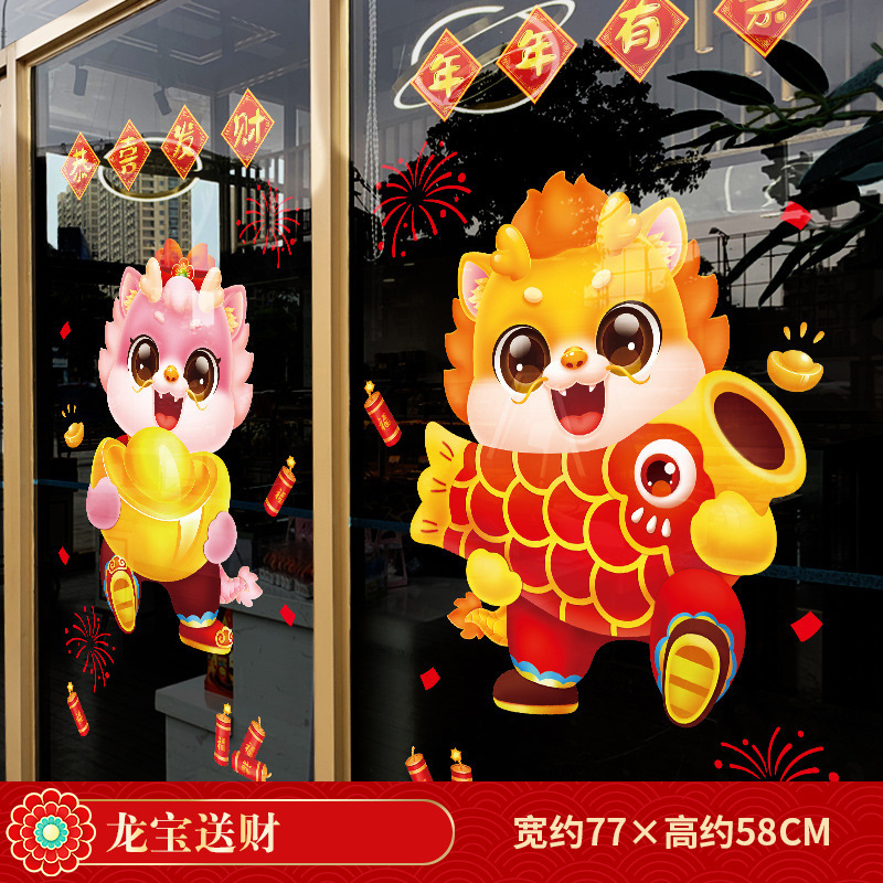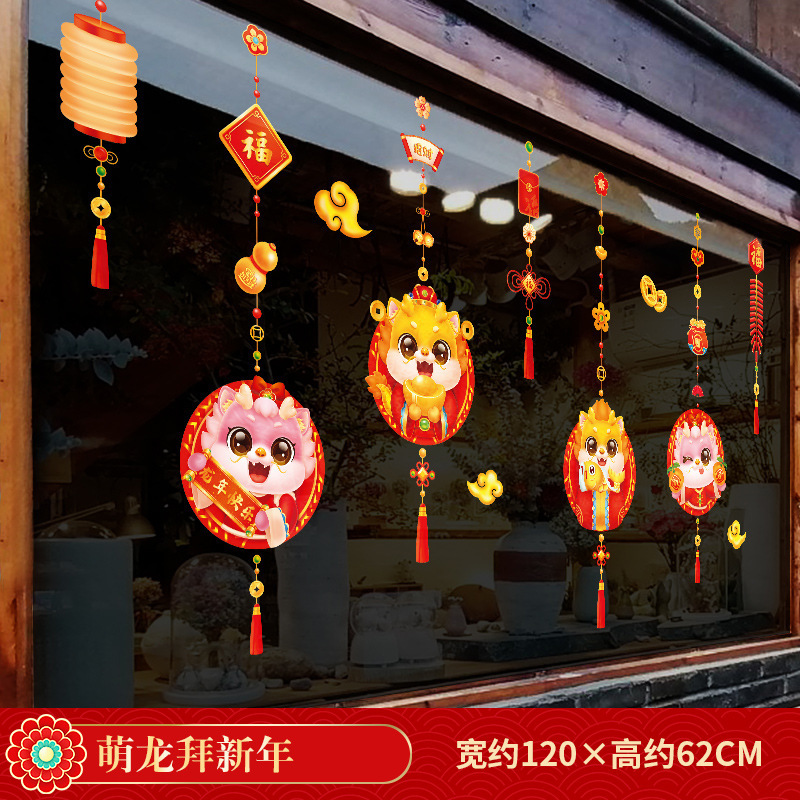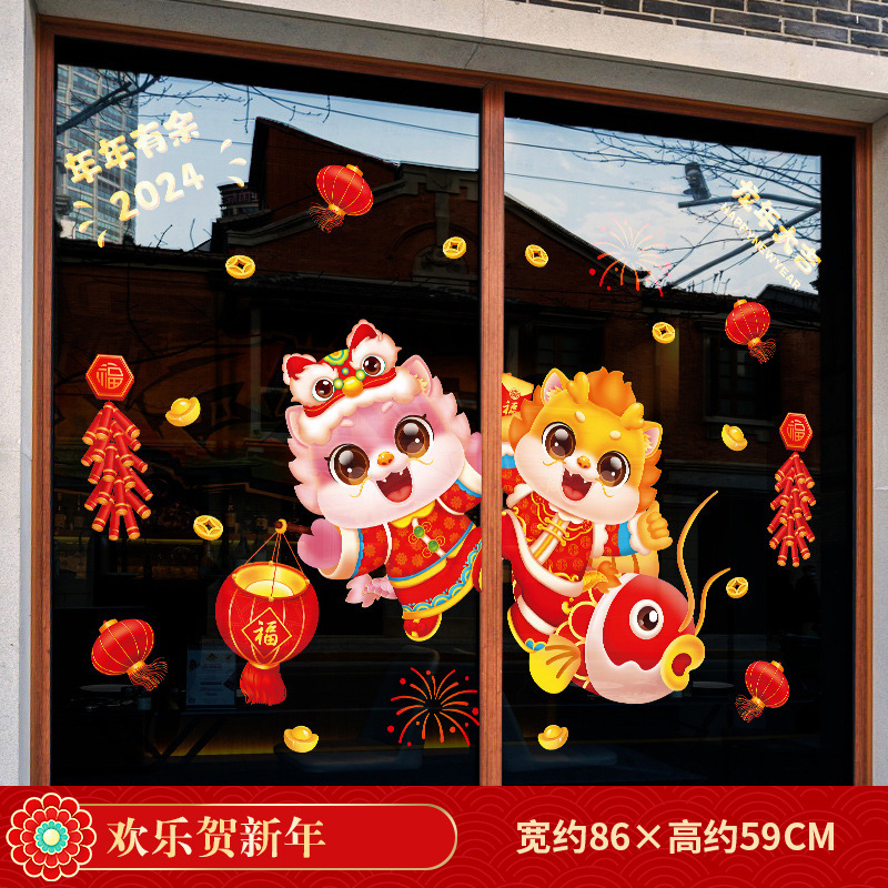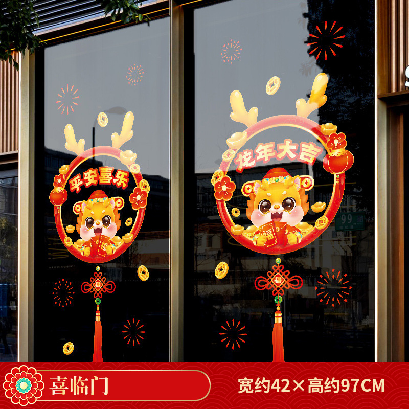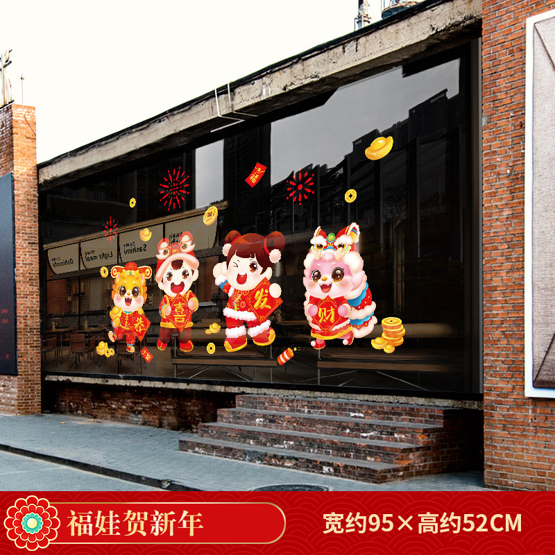 XL 해피 뉴 이어 쇼핑몰 유리 스티커 새해 장면 분위기 스티커 장식 대외 무역의 세대를 처리 할 수 있습니다스토어 가기