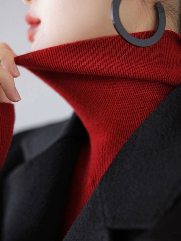레드 터틀넥 캐시미어 스웨터 여성의 가을과 겨울 2023 새로운 니트웨어 더미 칼라 서양식 탑 언더 셔츠스토어 가기