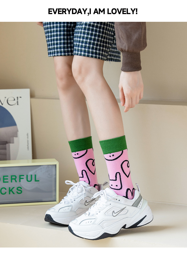 순수한면 양말 여성의 가을과 겨울 추상 만화 토끼 중간 송아지 일본인은 세련된 색상과 어울리는 뼈없는 더미 양말스토어 가기