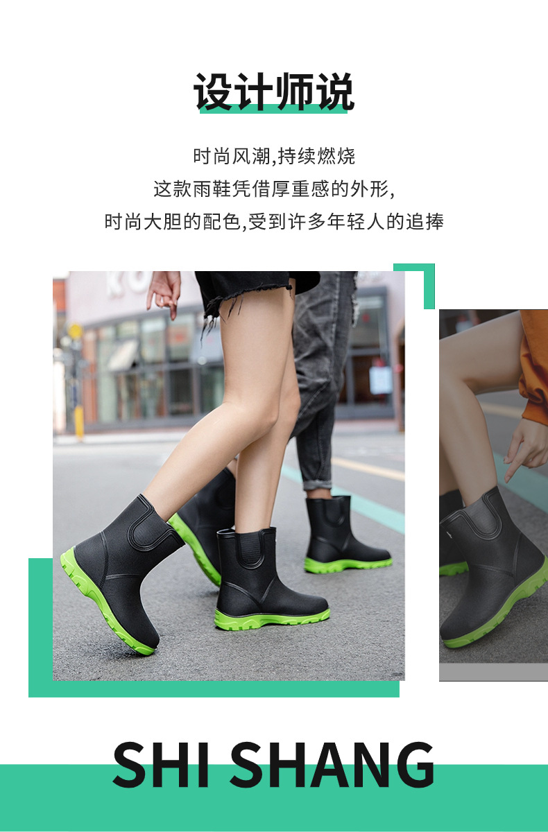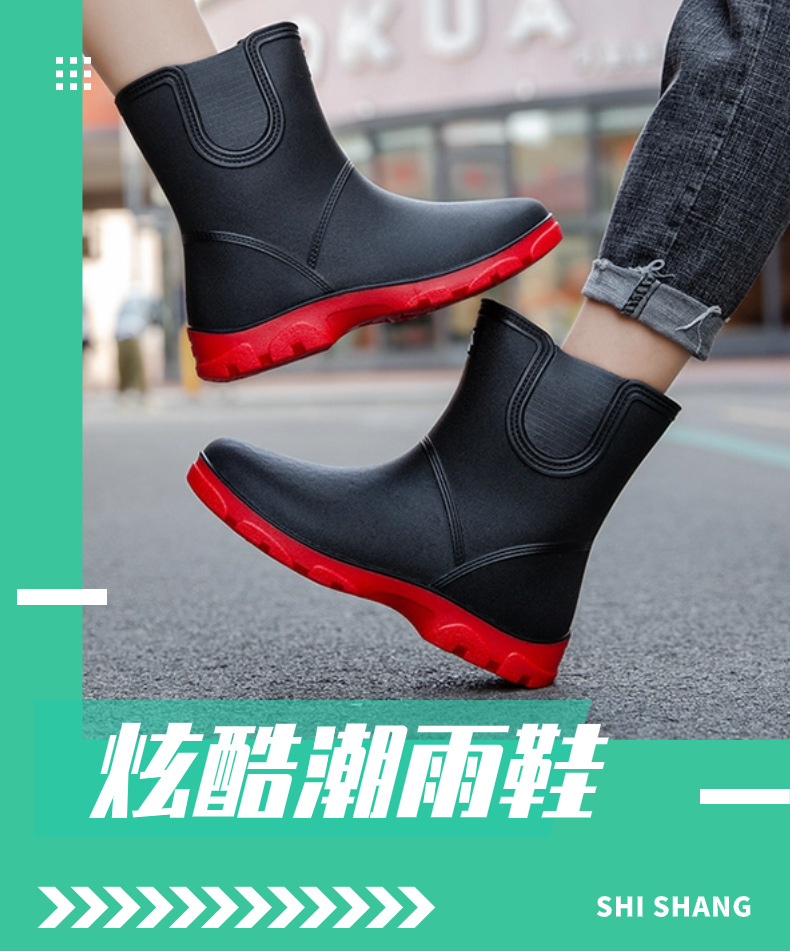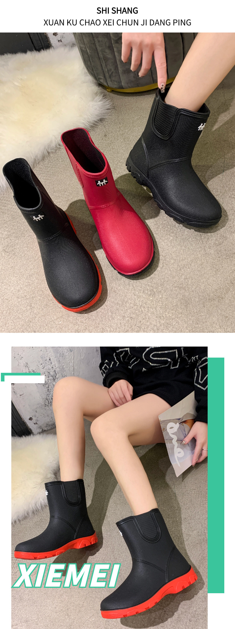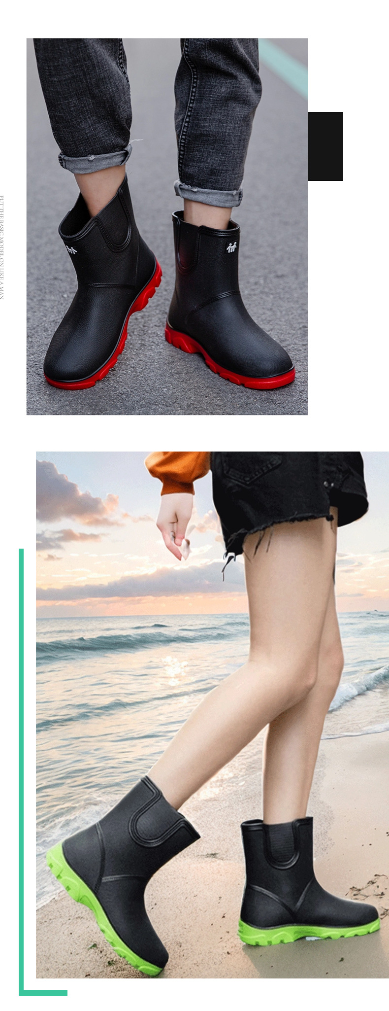 여성용 장화 남성용 유행 크로스 국경 중반 종아리 기모 장화 유럽 미끄럼 방지 방수 주방 세차 고무 신발스토어 가기