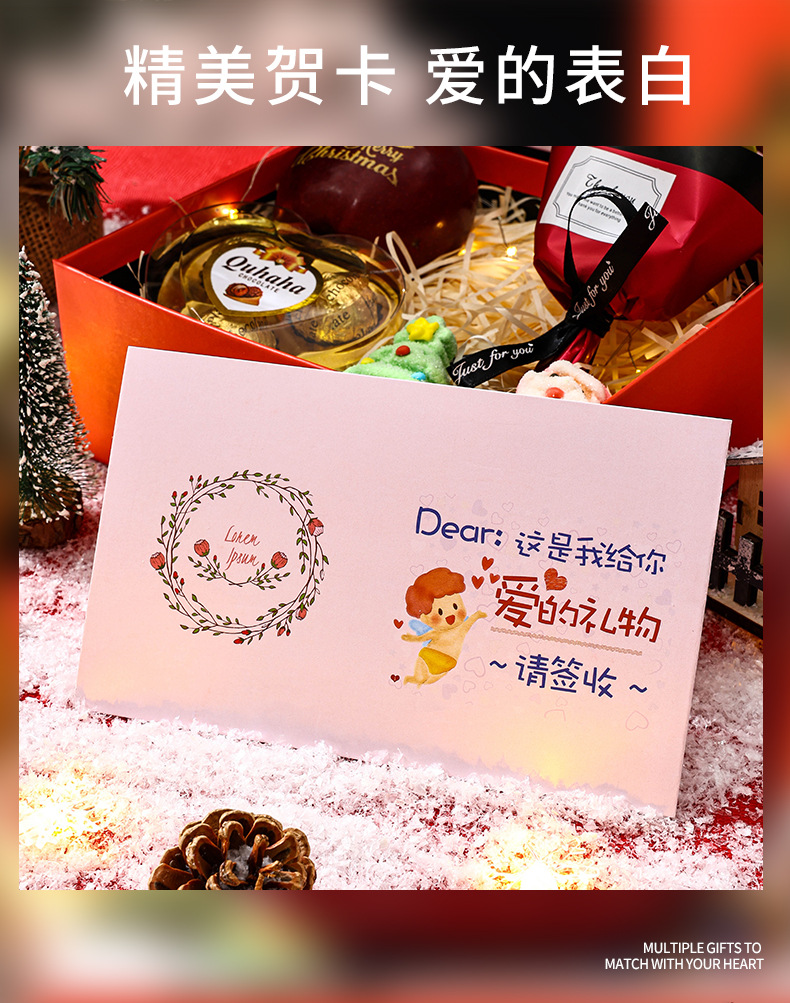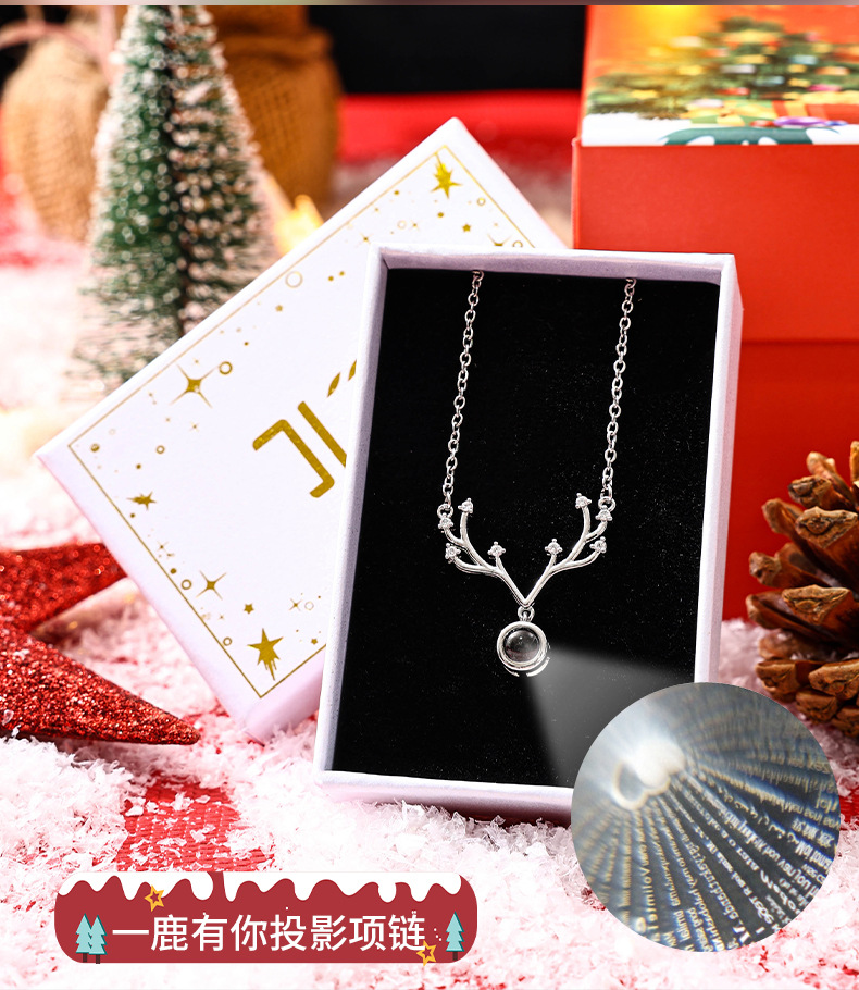 • 크리스마스 선물 상자 기본 스타일 + 사슴 목걸이 + 2 솜사탕