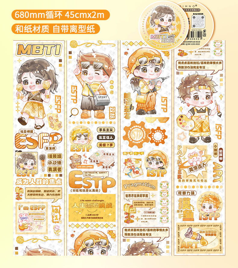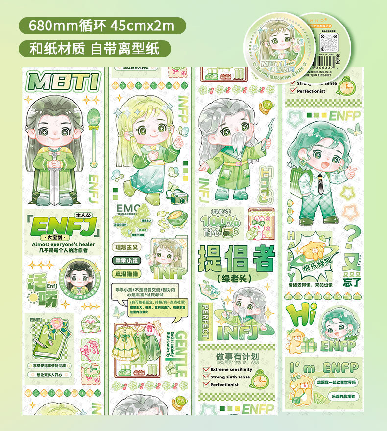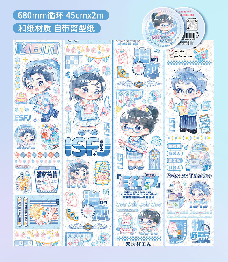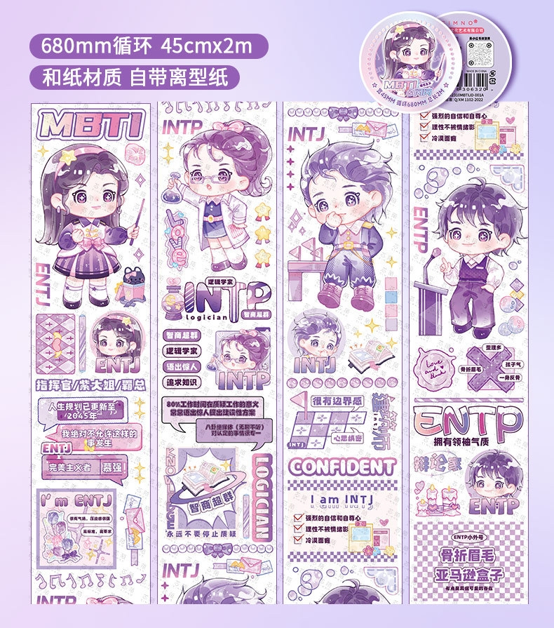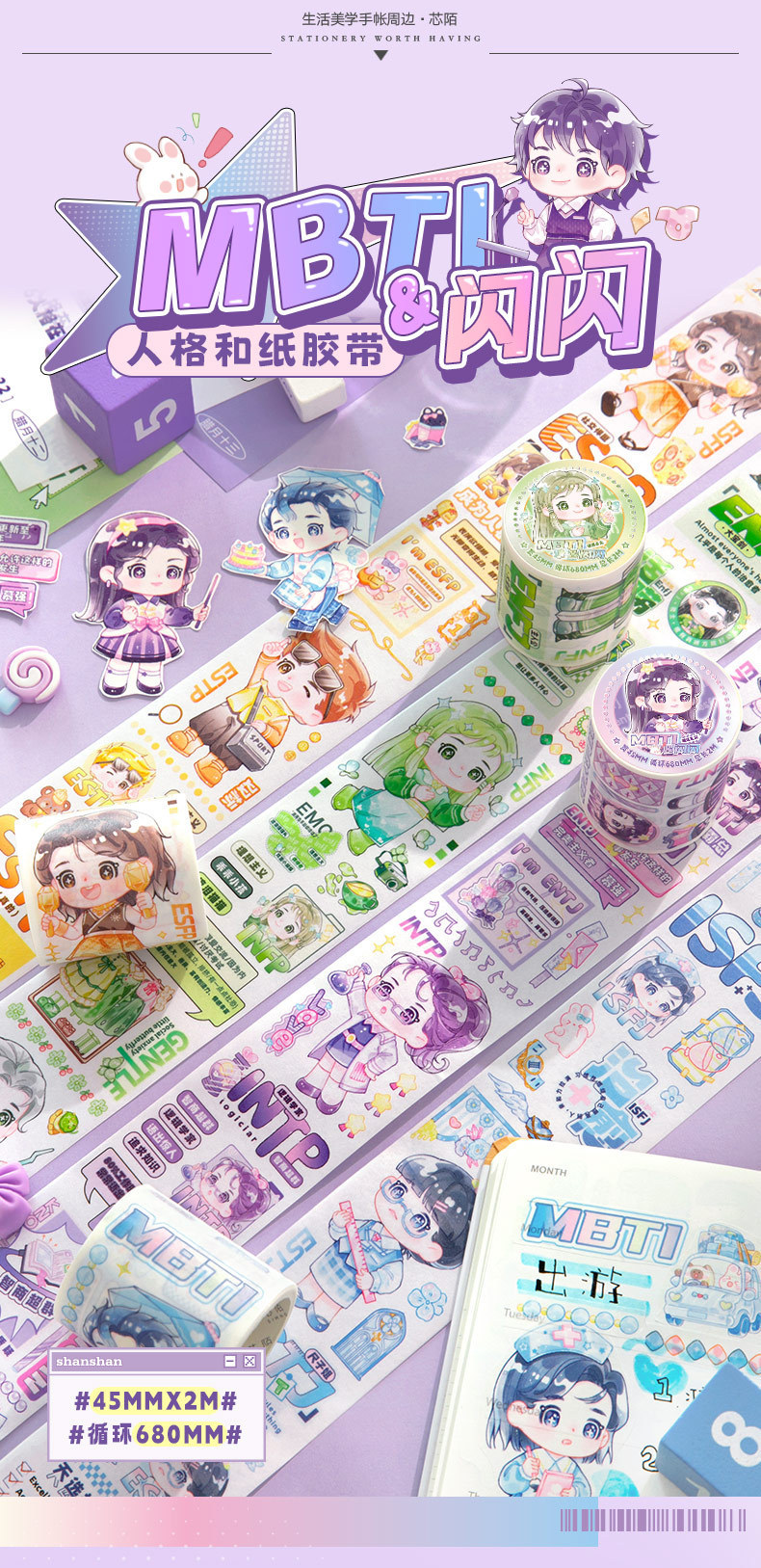 코어 모 빛나는 테이프 새로운 MBTI 성격 테스트 전체 세트 손 계정 테이프 전체 롤 귀여운 만화 테이프 스티커
