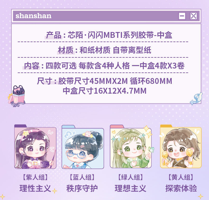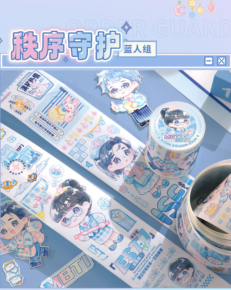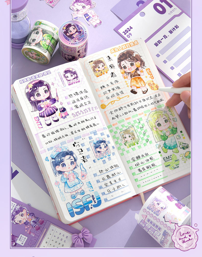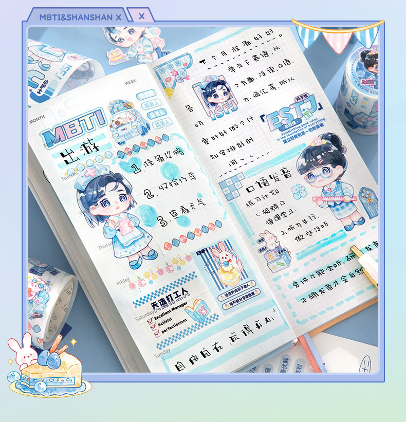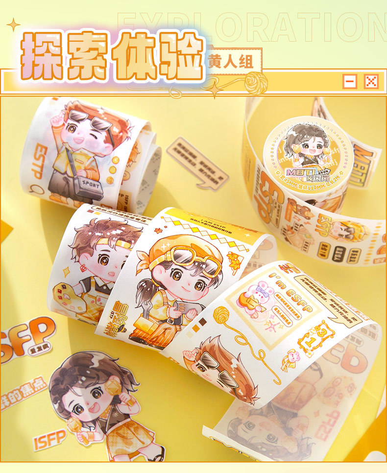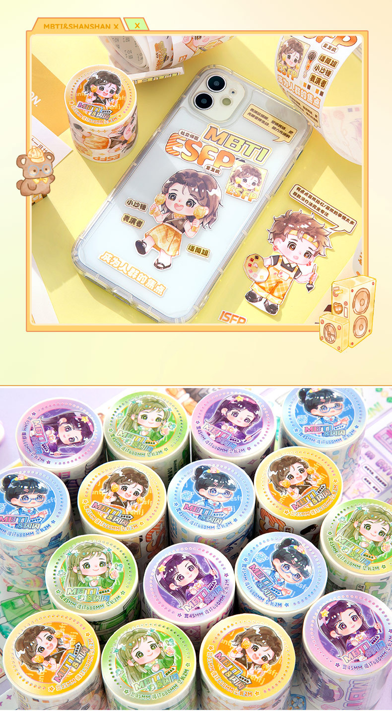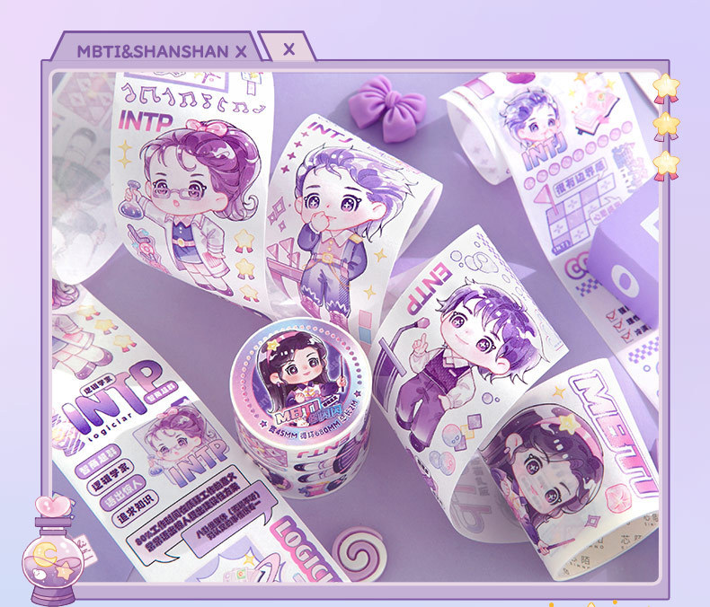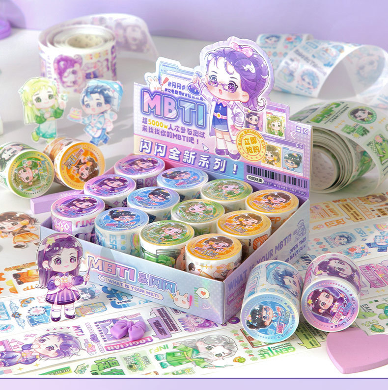 코어 모 빛나는 테이프 새로운 MBTI 성격 테스트 전체 세트 손 계정 테이프 전체 롤 귀여운 만화 테이프 스티커스토어 가기