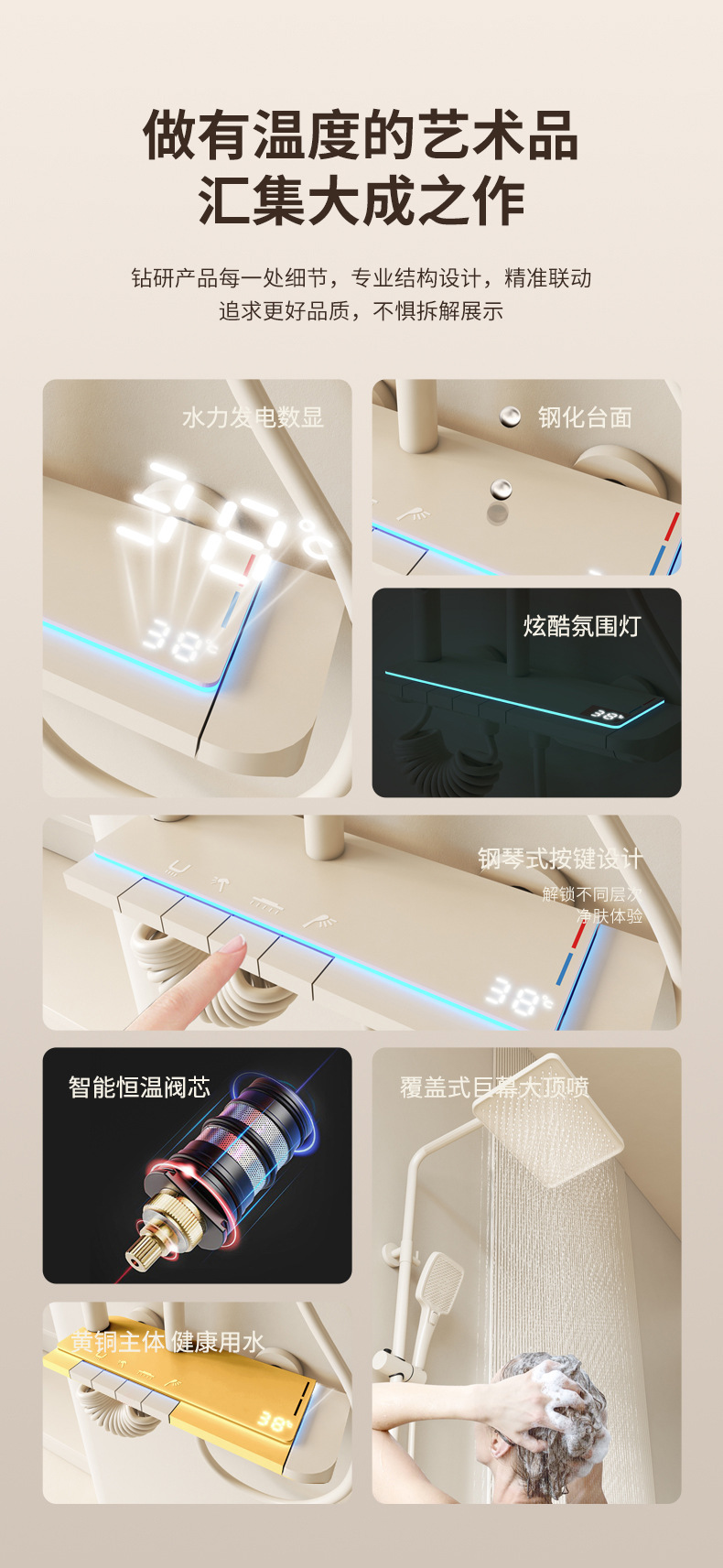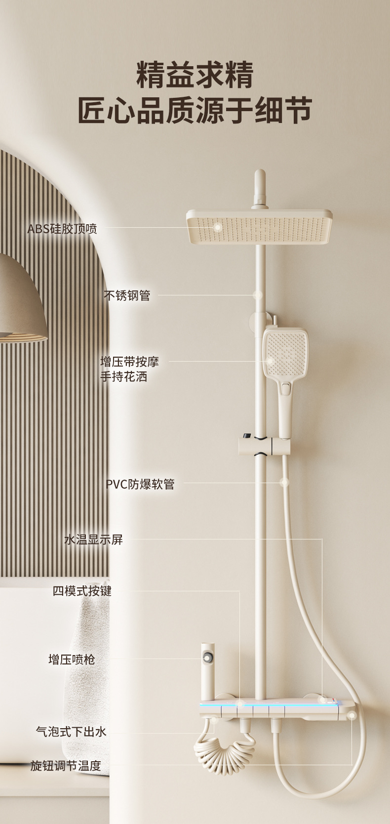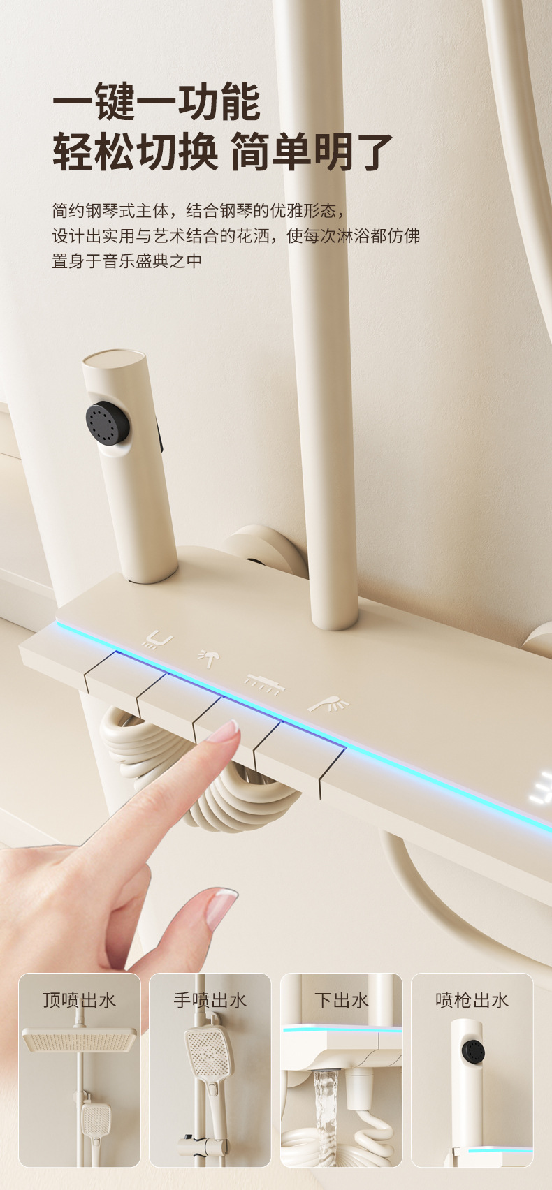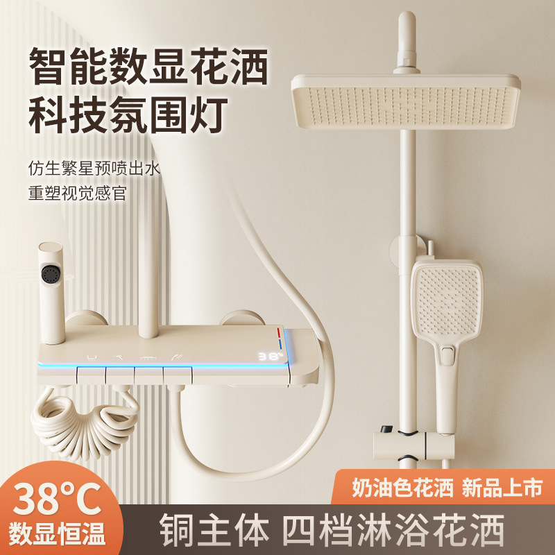 크림 스타일 화이트 일정한 온도 샤워 세트 샤워 욕실 가정용 피아노 키 레인 샤워 헤드 샤워 노즐스토어 가기