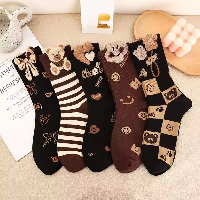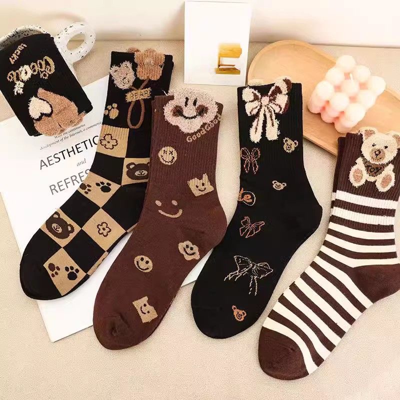 여성용 가을과 겨울 긴 양말, 세련된 올 매치 Maillard 시리즈 여성 스타킹 TikTok 같은 스타일의 새로운 따뜻한스토어 가기