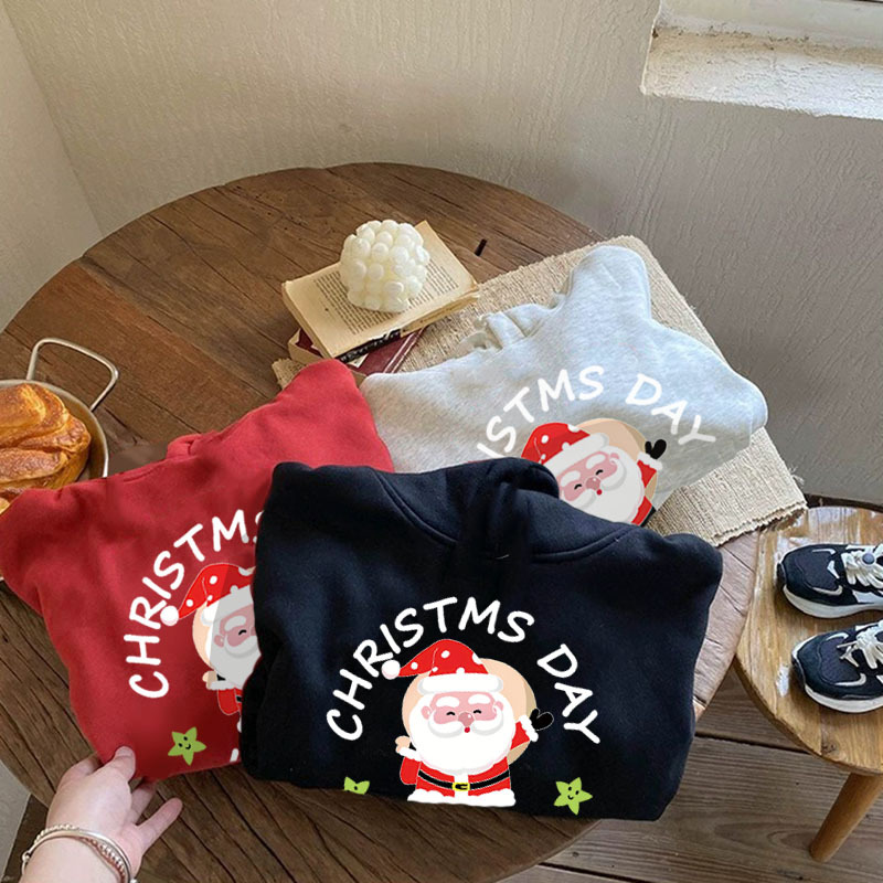양털 안감 아동용 후드티 가을 겨울 2025 새해 산타클로스 귀여운 어린이 남아 여아 따뜻한 상의