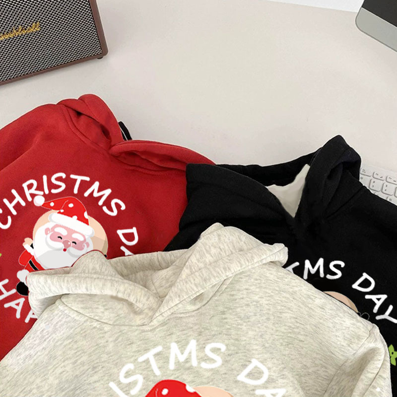 양털 안감 아동용 후드티 가을 겨울 2025 새해 산타클로스 귀여운 어린이 남아 여아 따뜻한 상의스토어 가기
