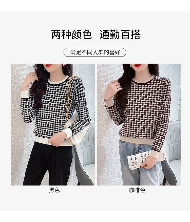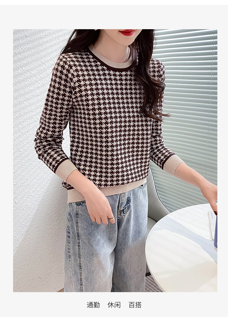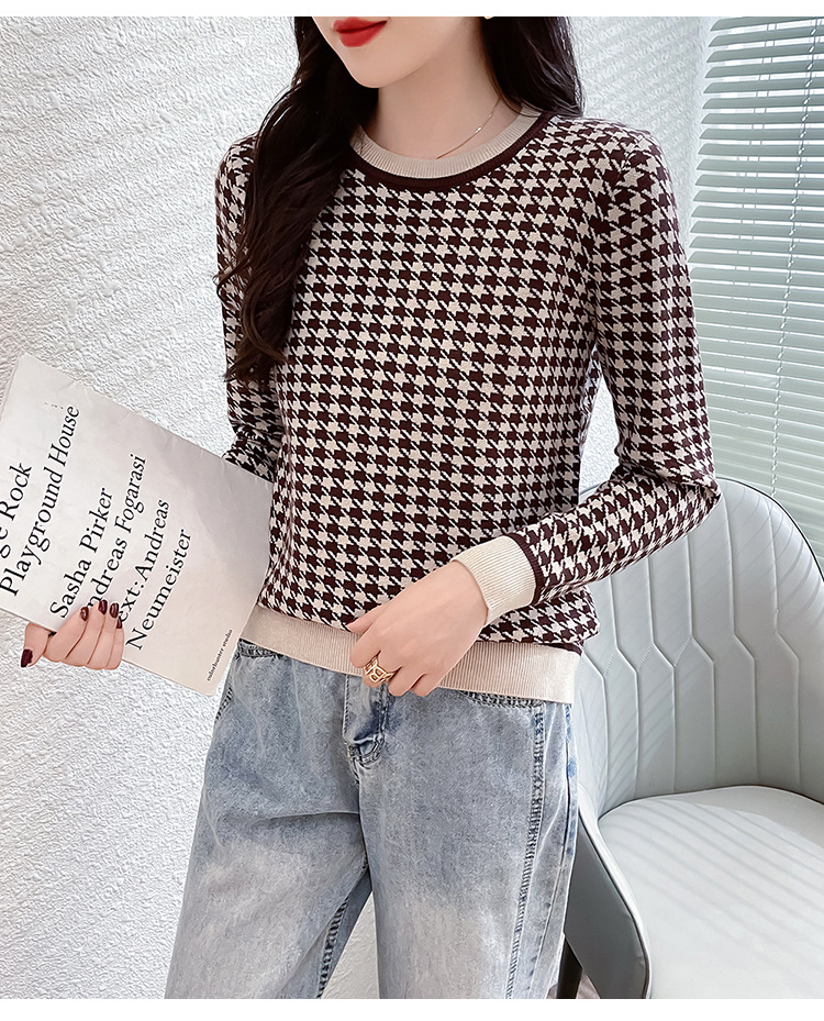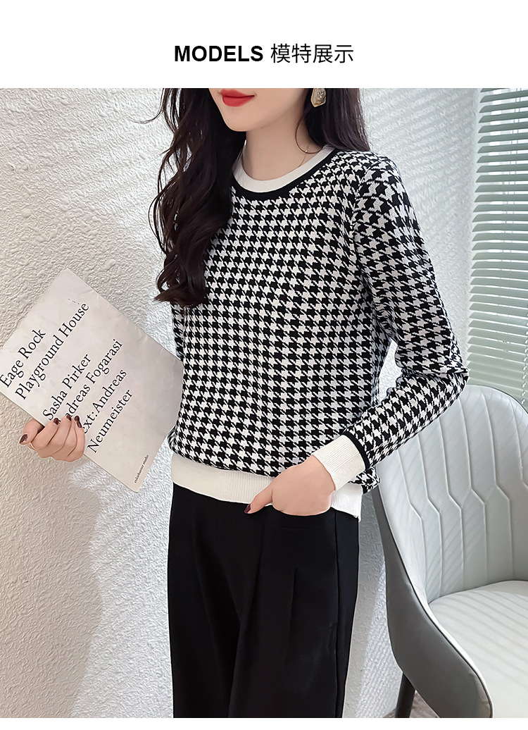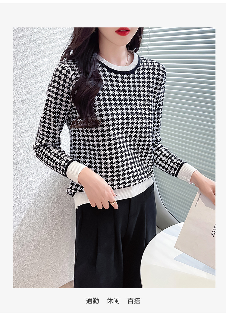 가을과 겨울의 새로운 houndstooth 스웨터 여성용 한국식 느슨한 둥근 목 스웨터 고기 커버 탑스토어 가기