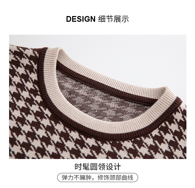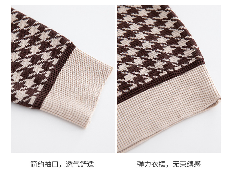 가을과 겨울의 새로운 houndstooth 스웨터 여성용 한국식 느슨한 둥근 목 스웨터 고기 커버 탑