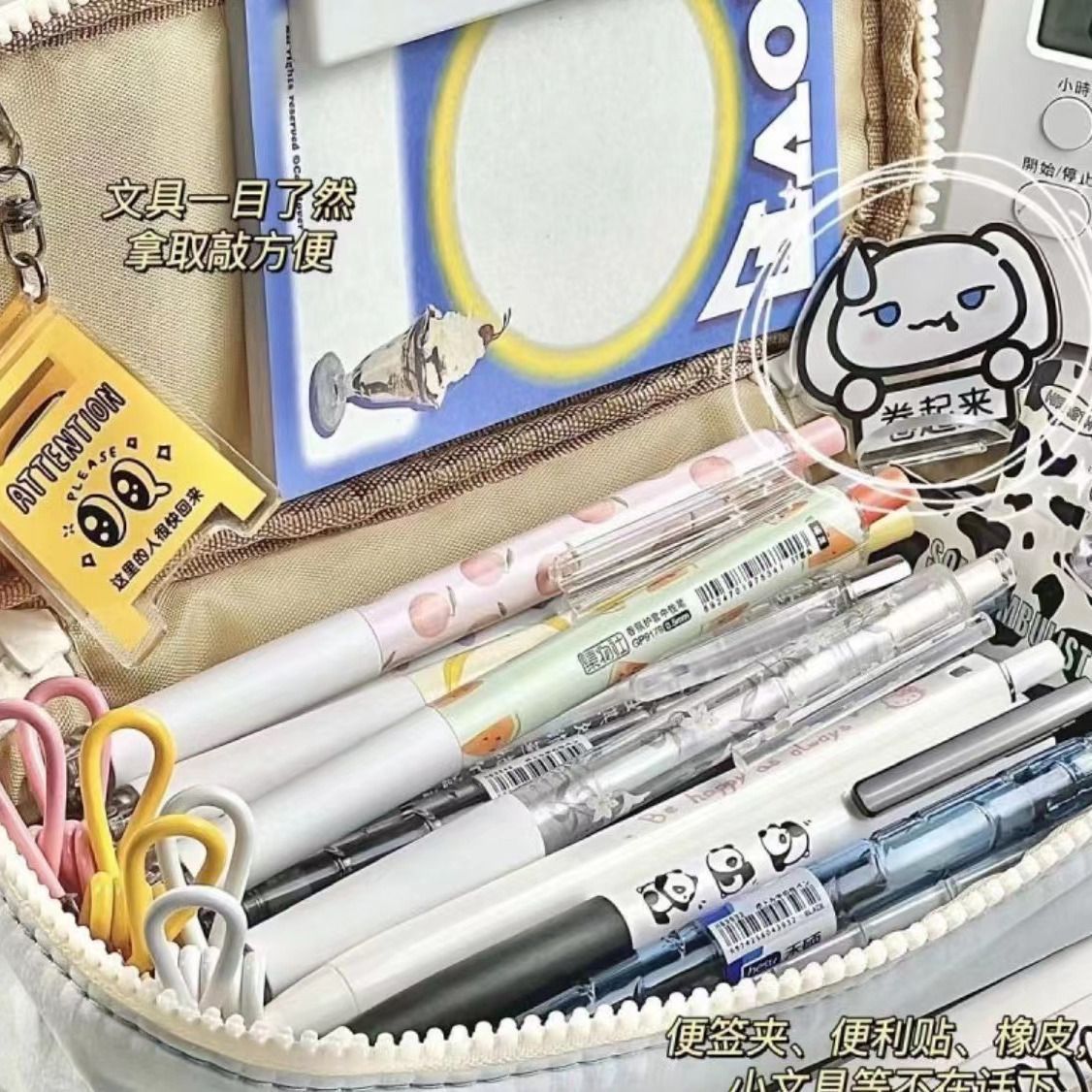 중학생과 고등학생을위한 회색 파란색 사랑 연필 케이스 이중 지퍼 연필 케이스 대용량 다층 다기능 보관스토어 가기