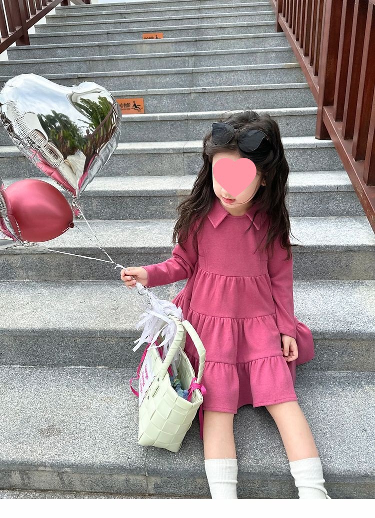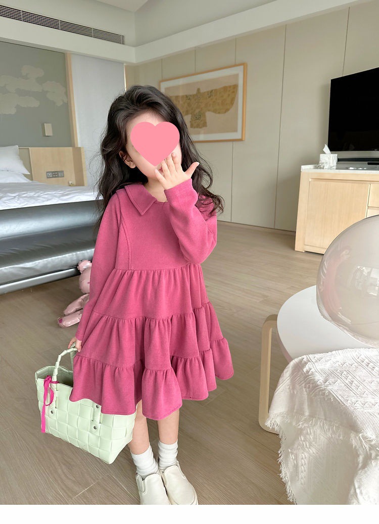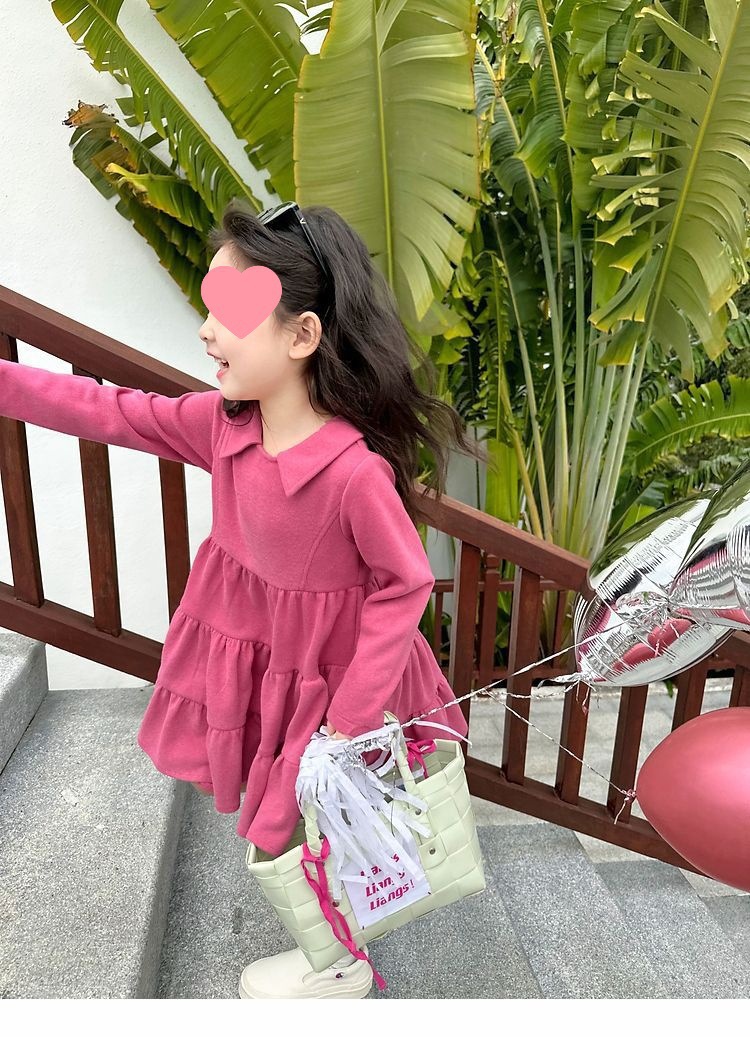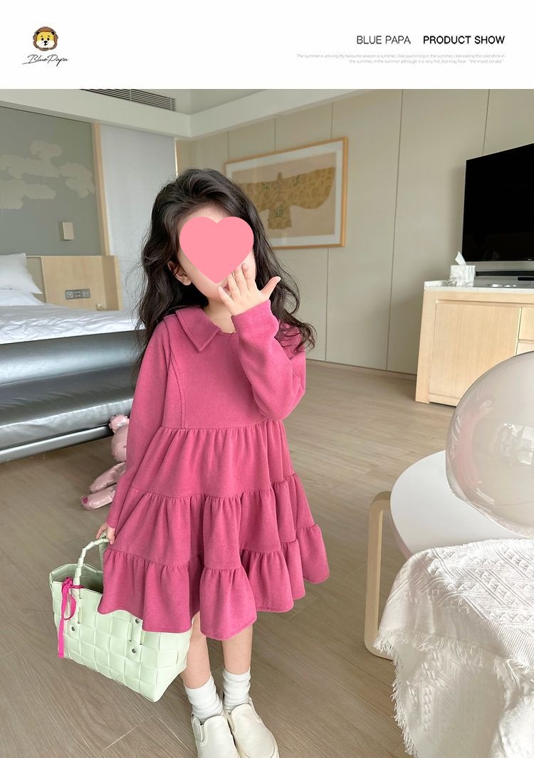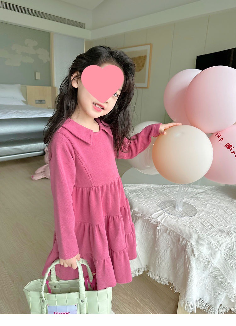 여아 공주 드레스 캐주얼 가을 원피스 한국 스타일 세련된 단색 긴팔 패셔너블 2024 신상품 어린이용스토어 가기