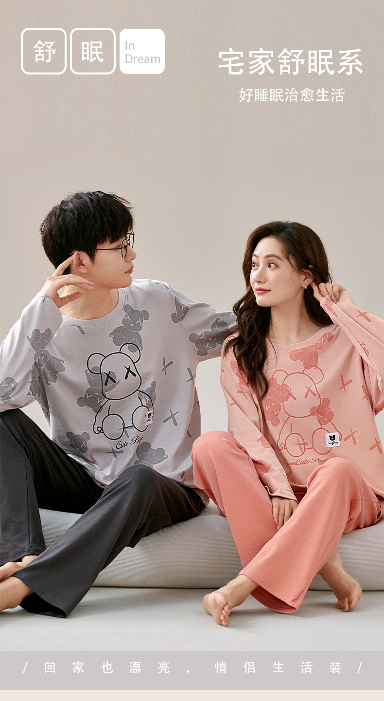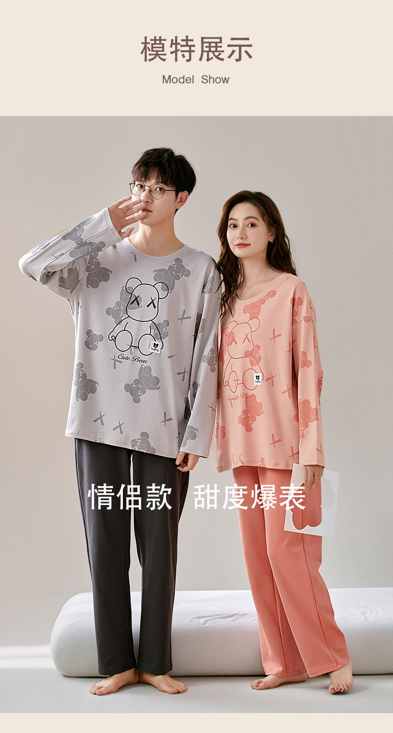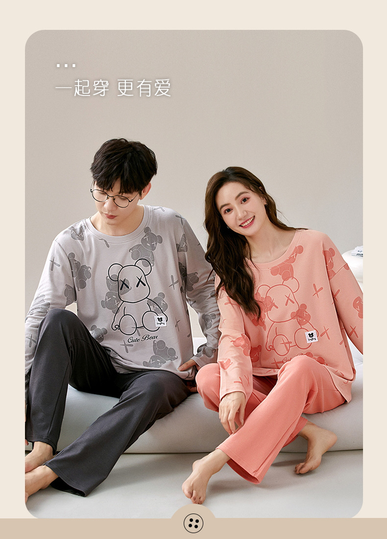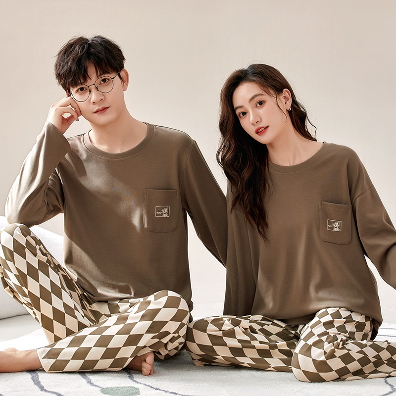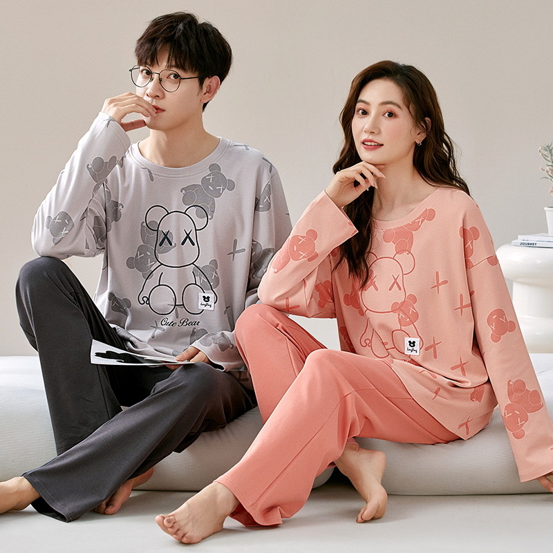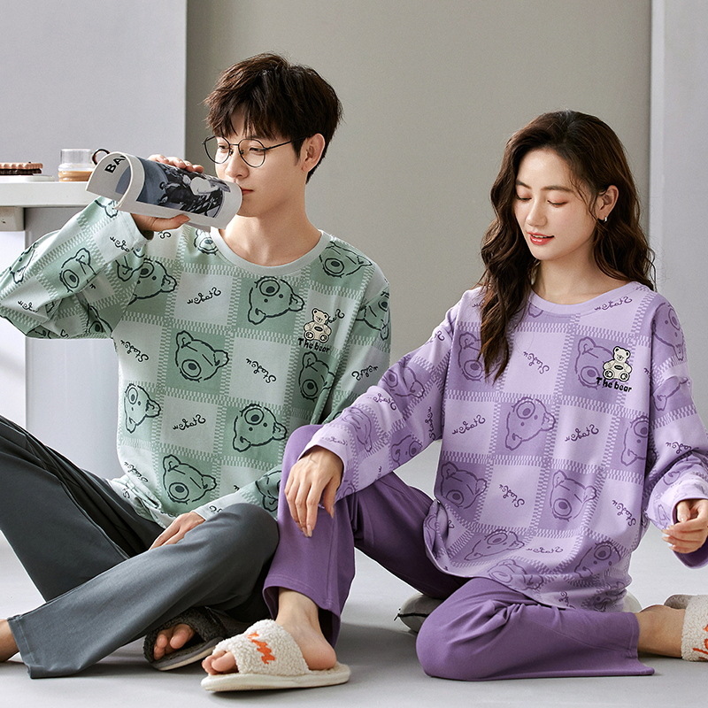 잠옷 커플은 봄과 가을 면화 긴팔 남성과 여성이 가을과 겨울 얇은 캐주얼 홈웨어 세트 밖에 입을 수 있습니다.스토어 가기