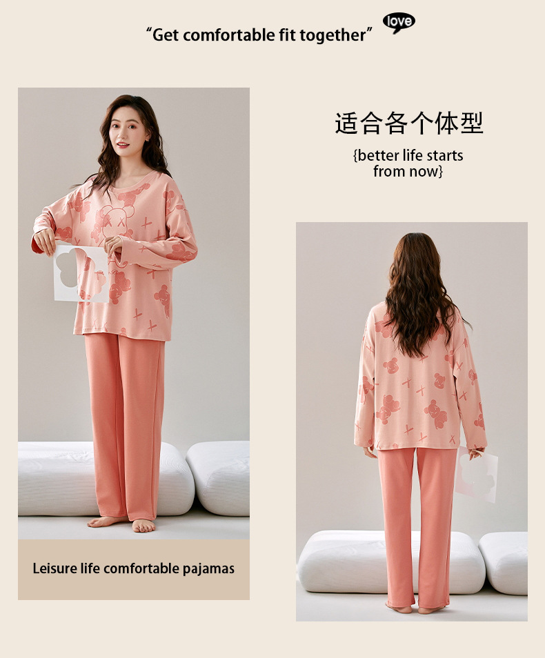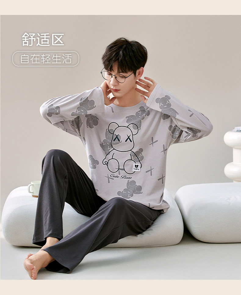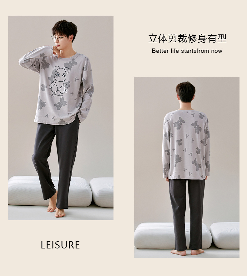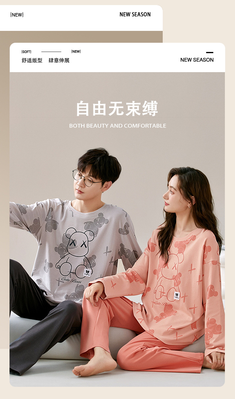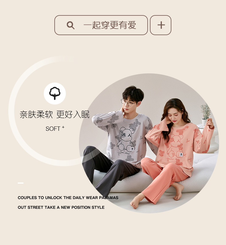 잠옷 커플은 봄과 가을 면화 긴팔 남성과 여성이 가을과 겨울 얇은 캐주얼 홈웨어 세트 밖에 입을 수 있습니다.스토어 가기