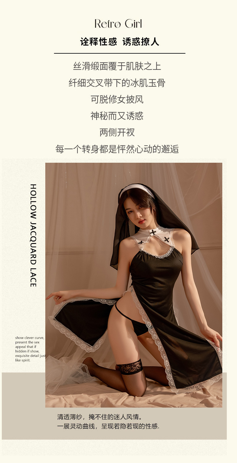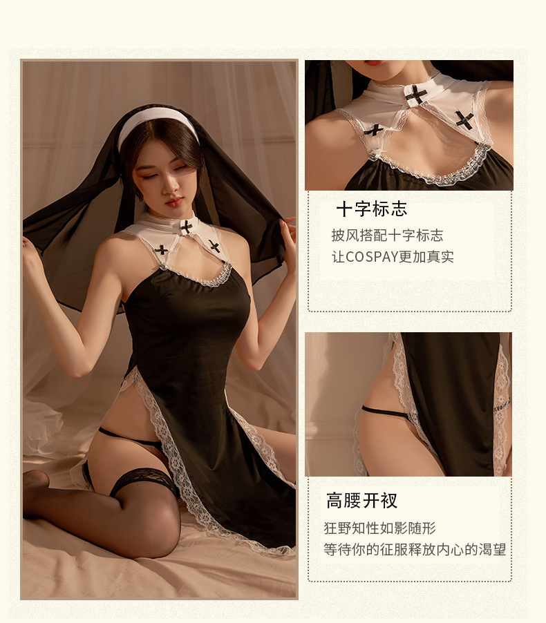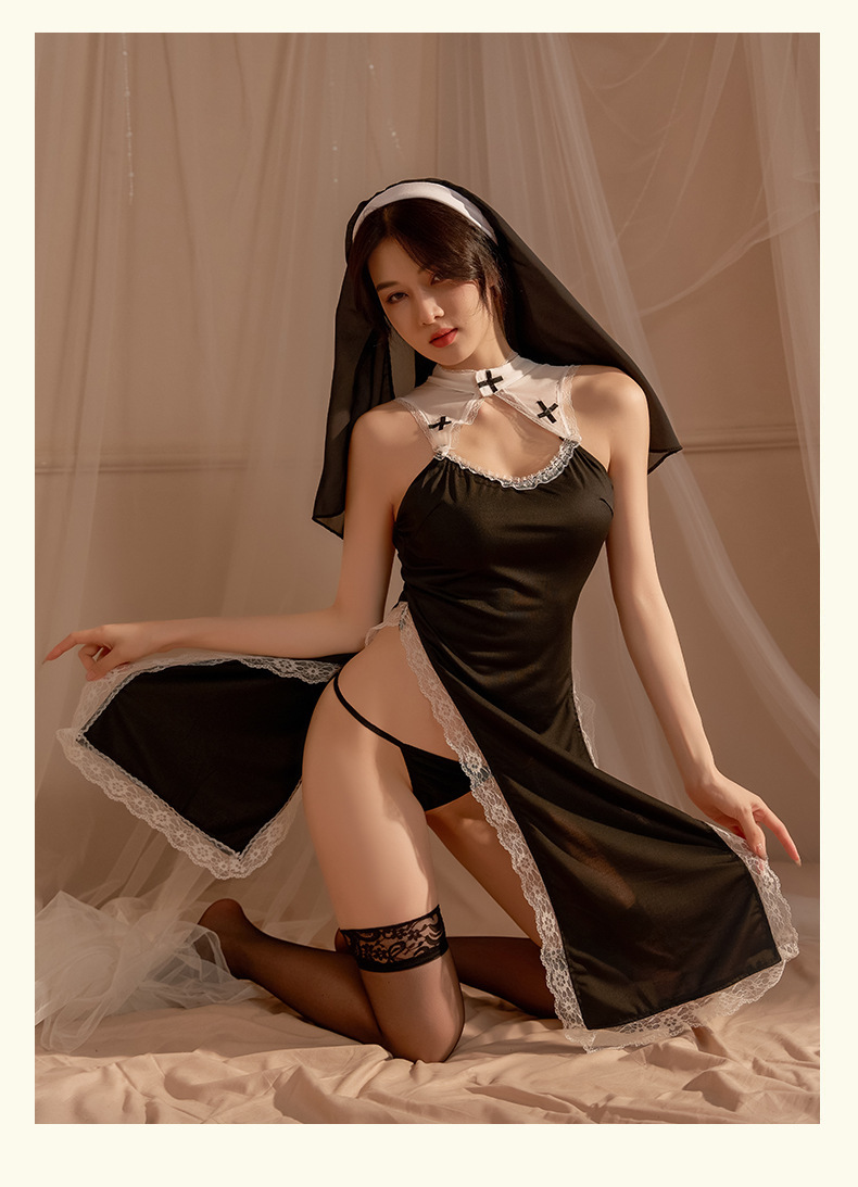 섹시한 란제리 섹시 수녀의 의류 롤 플레잉 할로우 아웃 긴 원피스 유니폼 홈 벤트 유혹 열정 원피스스토어 가기